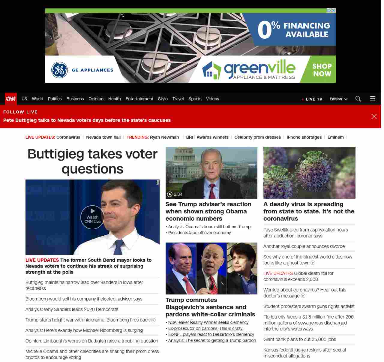 || screaming-banner-text banner-text-size–char-32″ data-analytics=”_list-hierarchical-xs_story_”> Buttigieg takes voter questions ||” , title: “CNN – Breaking News, Latest News and Videos” , siblings: {“articleList”:[{“uri”:”/2020/02/18/politics/iowa-recanvass-pete-buttigieg-lead/index.html”,”headline”:”Buttigieg maintains narrow lead over Sanders in Iowa after recanvass”,”thumbnail”:”//cdn.cnn.com/cnnnext/dam/assets/200207004627-pete-buttigieg-bernie-sanders-split-small-11.jpg”,”duration”:””,”description”:”The u003ca href=”https://www.cnn.com/2020/02/12/politics/iowa-caucuses-recanvass/index.html” target=”_blank”>recanvass of more than 100 Iowa caucus precinctsu003c/a> has ended, the state’s Democratic Party said on Tuesday, resulting in former South Bend, Indiana, Mayor u003ca href=”https://www.cnn.com/election/2020/candidate/buttigieg” target=”_blank”>Pete Buttigiegu003c/a>’s lead over Vermont Sen. u003ca href=”https://www.cnn.com/election/2020/candidate/sanders” target=”_blank”>Bernie Sandersu003c/a> tightening to a fraction of a standard delegate equivalent.”,”layout”:””