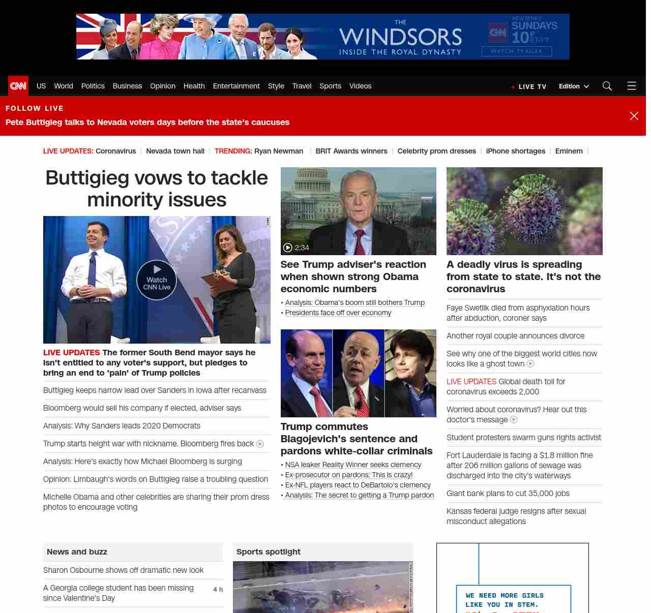 || screaming-banner-text banner-text-size–char-41″ data-analytics=”_list-hierarchical-xs_story_”> Buttigieg vows to tackle minority issues ||” , title: “CNN – Breaking News, Latest News and Videos” , siblings: {“articleList”:[{“uri”:”/2020/02/18/politics/iowa-recanvass-pete-buttigieg-lead/index.html”,”headline”:”Buttigieg keeps narrow lead over Sanders in Iowa after recanvass”,”thumbnail”:”//cdn.cnn.com/cnnnext/dam/assets/200207004627-pete-buttigieg-bernie-sanders-split-small-11.jpg”,”duration”:””,”description”:”The u003ca href=”https://www.cnn.com/2020/02/12/politics/iowa-caucuses-recanvass/index.html” target=”_blank”>recanvass of more than 100 Iowa caucus precinctsu003c/a> has ended, the state’s Democratic Party said on Tuesday, resulting in former South Bend, Indiana, Mayor u003ca href=”https://www.cnn.com/election/2020/candidate/buttigieg” target=”_blank”>Pete Buttigiegu003c/a>’s lead over Vermont Sen. u003ca href=”https://www.cnn.com/election/2020/candidate/sanders” target=”_blank”>Bernie Sandersu003c/a> tightening to a fraction of a standard delegate equivalent.”,”layout”:””