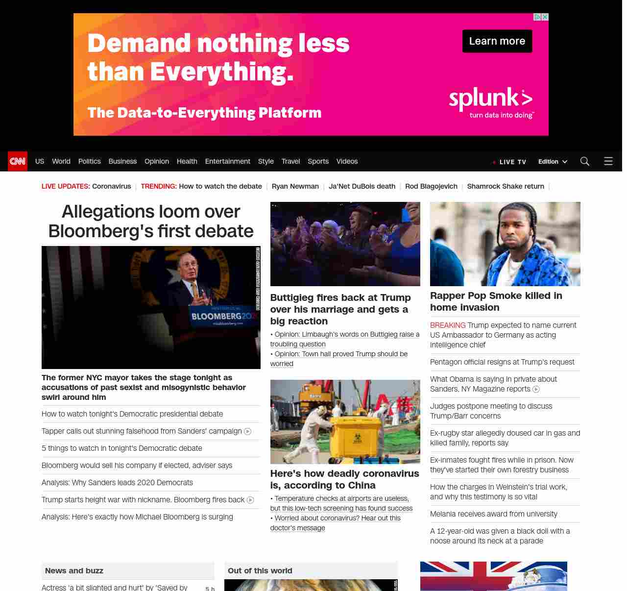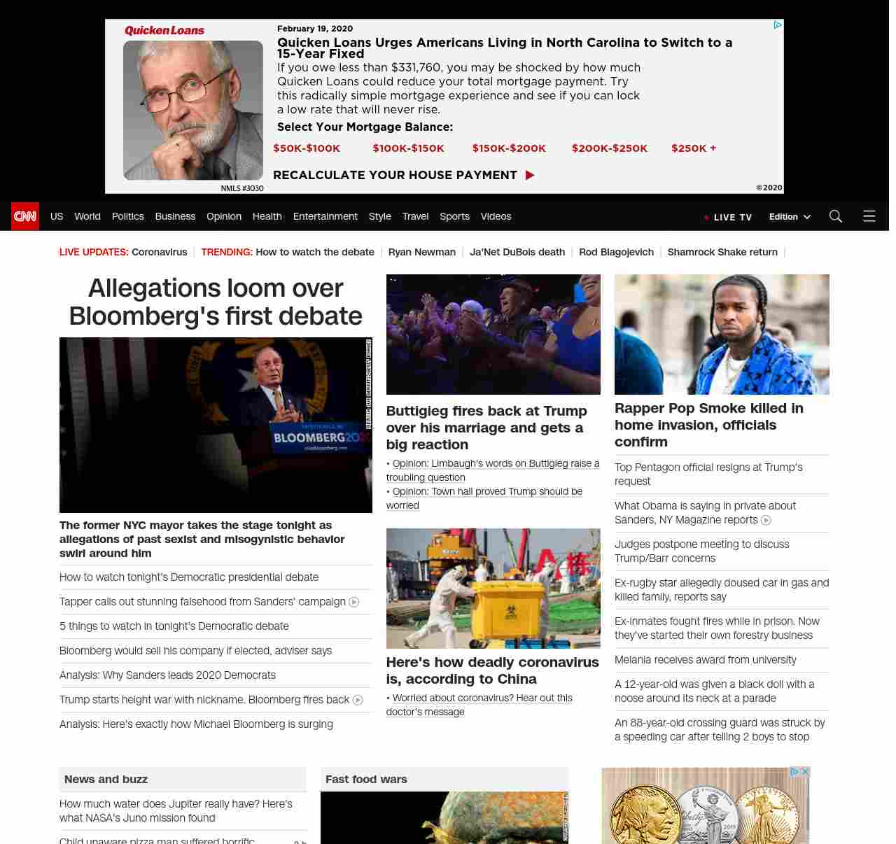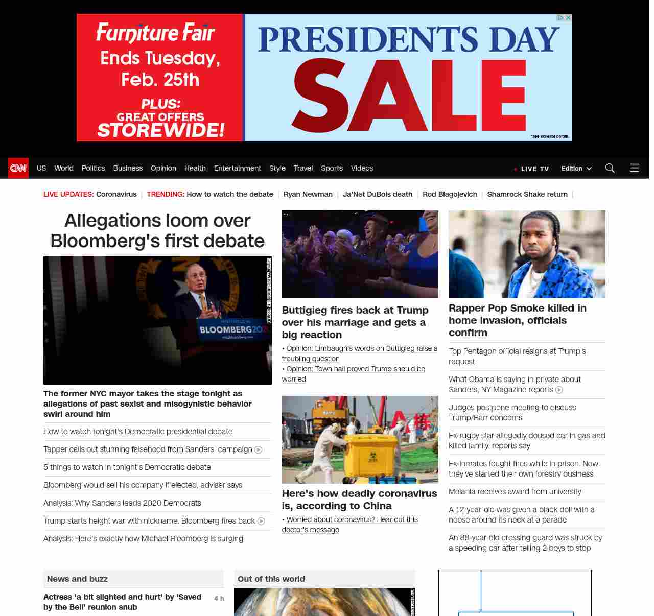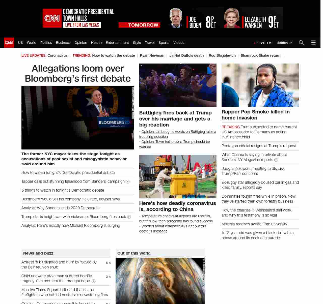 || screaming-banner-text banner-text-size–char-47″ data-analytics=”_list-hierarchical-xs_article_”> Allegations loom over Bloomberg’s first debate ||” , title: “CNN – Breaking News, Latest News and Videos” , siblings: {“articleList”:[{“uri”:”/2020/02/19/politics/michael-bloomberg-women/index.html”,”headline”:”u003cstrong>The former NYC mayor takes the stage tonight as accusations of past sexist and misogynistic behavior swirl around himu003c/strong>”,”thumbnail”:”//cdn.cnn.com/cnnnext/dam/assets/200218120229-105-bloomberg-lead-image-small-11.jpg”,”duration”:””,”description”:”When u003ca href=”https://www.cnn.com/election/2020/candidate/bloomberg” target=”_blank”>Michael Bloombergu003c/a> takes the u003ca href=”https://www.cnn.com/2020/02/19/politics/democratic-debate-tonight/index.html” target=”_blank”>2020 debate stageu003c/a> for the first time Wednesday night, allegations of sexist and misogynistic behavior will loom over the former New York City Mayor.”,”layout”:””