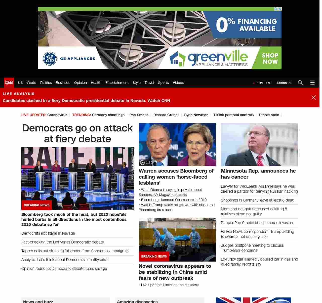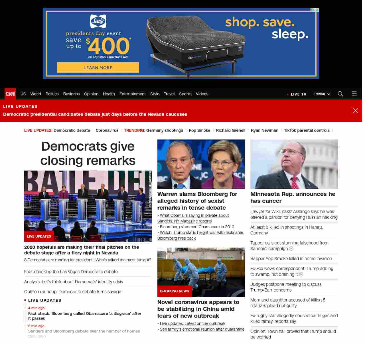 || screaming-banner-text banner-text-size–char-32″ data-analytics=”_list-hierarchical-xs_hyperlink_”> Democrats give closing remarks ||” , title: “CNN – Breaking News, Latest News and Videos” , siblings: {“articleList”:[{“uri”:”/2020/02/19/politics/2020-primary-debate-las-vegas/index.html”,”headline”:”u003cstrong>Bloomberg took much of the heat, but 2020 hopefuls hurled barbs in all directions in the most contentious 2020 debate so faru003c/strong>”,”thumbnail”:”//cdn.cnn.com/cnnnext/dam/assets/200219211355-06-msnbc-dem-debate-0219-candidates-at-podiums-small-11.jpg”,”duration”:””,”description”:””,”layout”:””