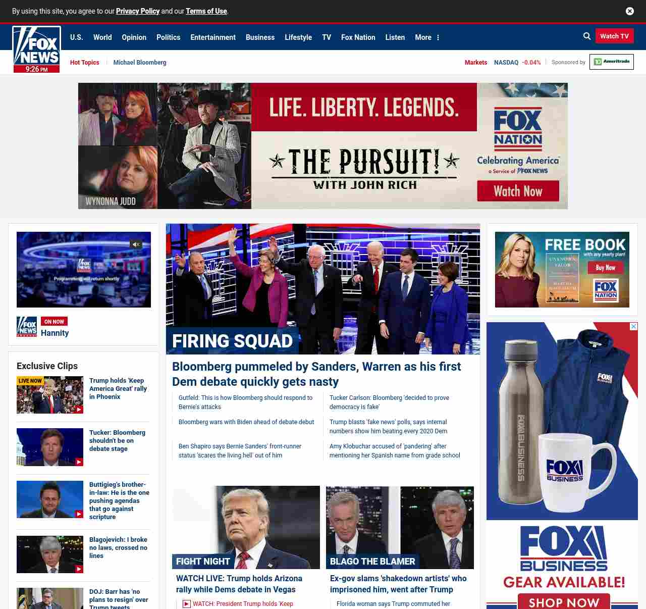 FN: [[FIRING SQUAD]] Bloomberg pummeled by Sanders, Warren as his first Dem debate quickly turns nasty ((lubuntu at wor3))