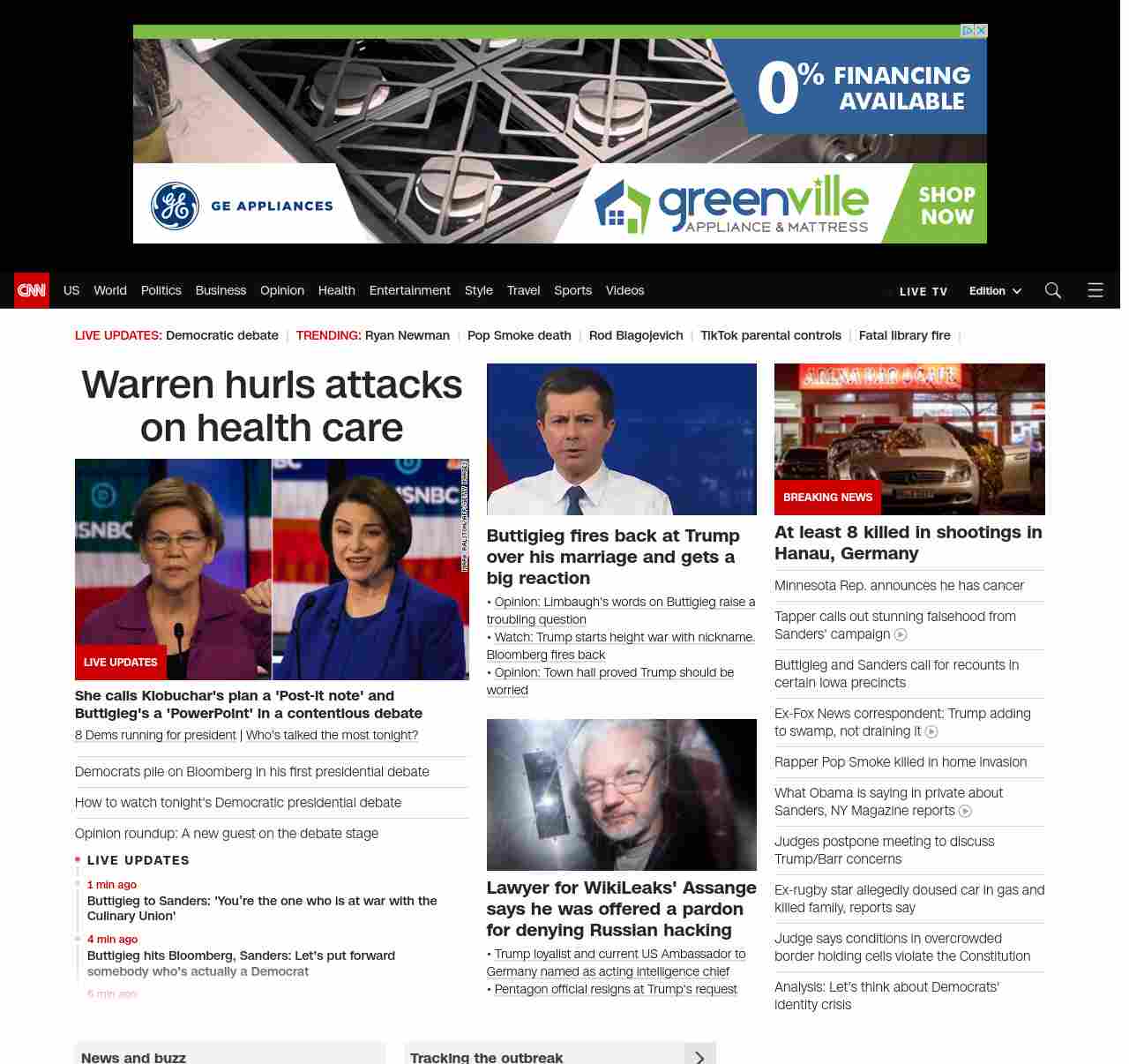 || screaming-banner-text banner-text-size–char-38″ data-analytics=”_list-hierarchical-xs_hyperlink_”> Warren hurls attacks on health care ||” , title: “CNN – Breaking News, Latest News and Videos” , siblings: {“articleList”:[{“uri”:”/2020/02/19/politics/las-vegas-debate-fact-check/index.html”,”headline”:”Fact-checking the Las Vegas Democratic debate”,”thumbnail”:”//cdn.cnn.com/cnnnext/dam/assets/200219102614-0219-nevada-debate-candidates-split-small-11.jpg”,”duration”:””,”description”:”Welcome to CNN’s fact check coverage of the Democratic presidential debate hosted by NBC News and MSNBC and held in Las Vegas ahead of Saturday’s Nevada caucuses.”,”layout”:””