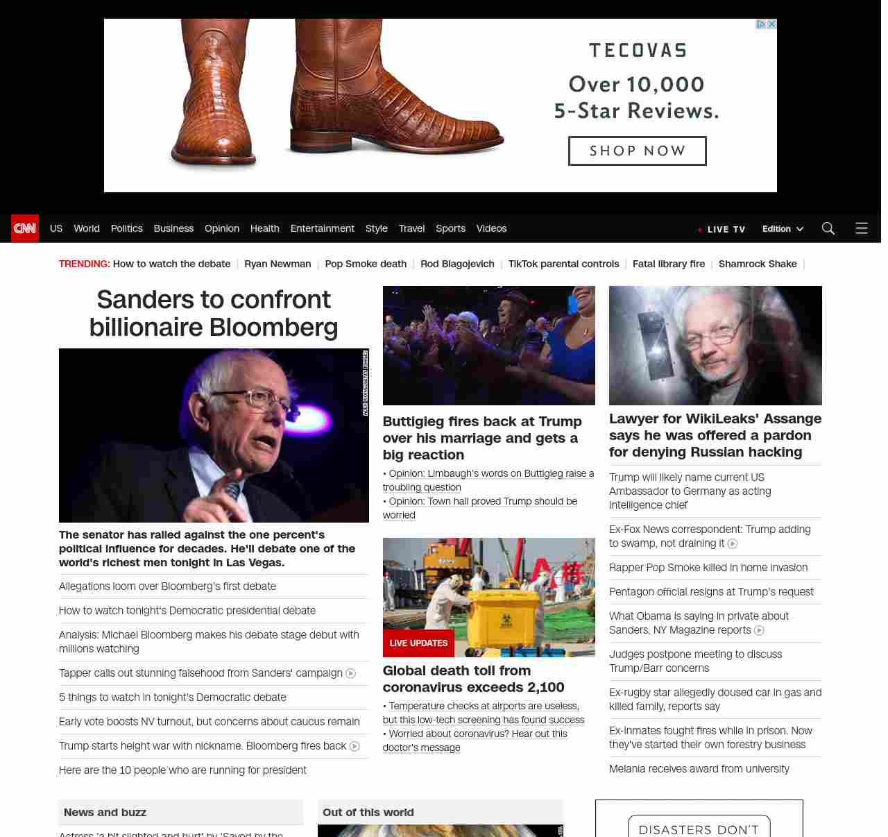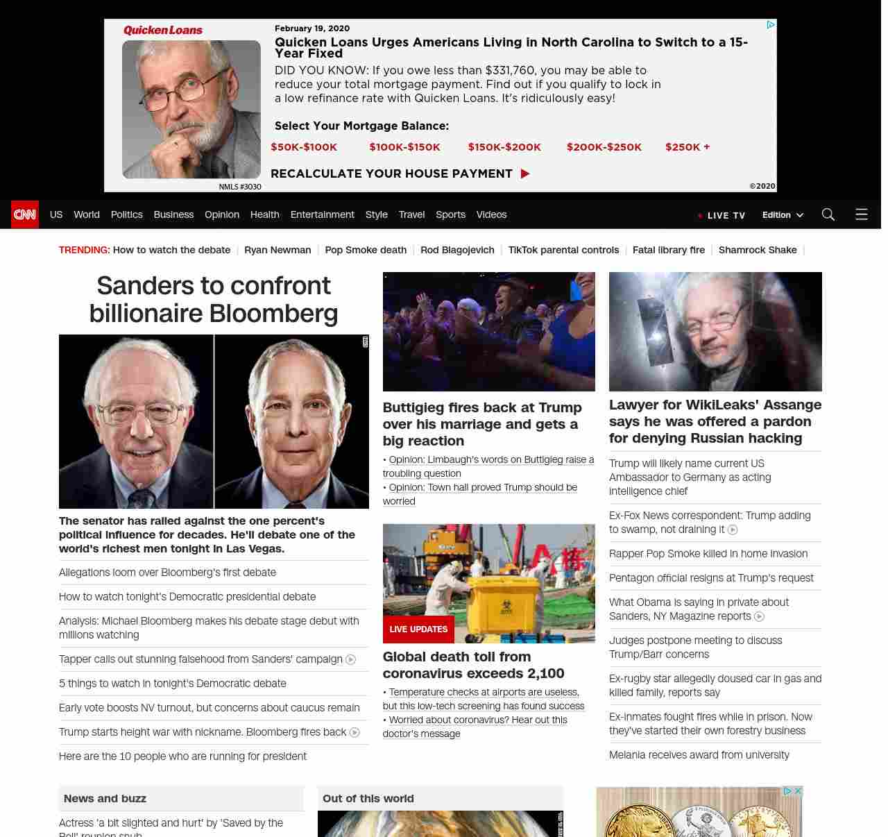 || screaming-banner-text banner-text-size–char-44″ data-analytics=”_list-hierarchical-xs_article_”> Sanders to confront billionaire Bloomberg ||” , title: “CNN – Breaking News, Latest News and Videos” , siblings: {“articleList”:[{“uri”:”/2020/02/19/politics/2020-primary-debate-las-vegas/index.html”,”headline”:”u003cstrong>The senator has railed against the one percent’s political influence for decades. He’ll debate one of the world’s richest men tonight in Las Vegas.u003c/strong>”,”thumbnail”:”//cdn.cnn.com/cnnnext/dam/assets/200218111446-02-bernie-sanders-0215-small-11.jpg”,”duration”:””,”description”:”Democratic presidential front-runner Bernie Sanders has railed against billionaires and their influence on politics for years. On Wednesday in Las Vegas, he will face off u003ca href=”http://www.cnn.com/2020/02/19/politics/democratic-debate-tonight/index.html” target=”_blank”>on the debate stageu003c/a> against one of the world’s richest men, the rapidly rising u003ca href=”https://www.cnn.com/election/2020/candidate/bloomberg” target=”_blank”>Michael Bloombergu003c/a>.”,”layout”:””