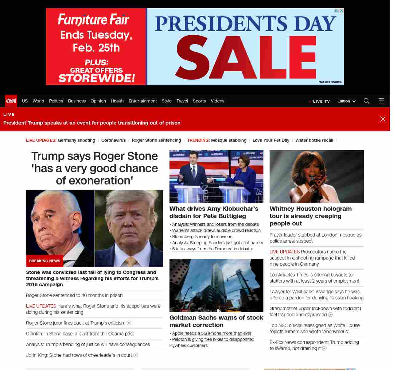 CNN1: FOXVCNN=|Trump says Roger Stone ‘has a very good chance of exoneration’| ((lubuntu at wor3))