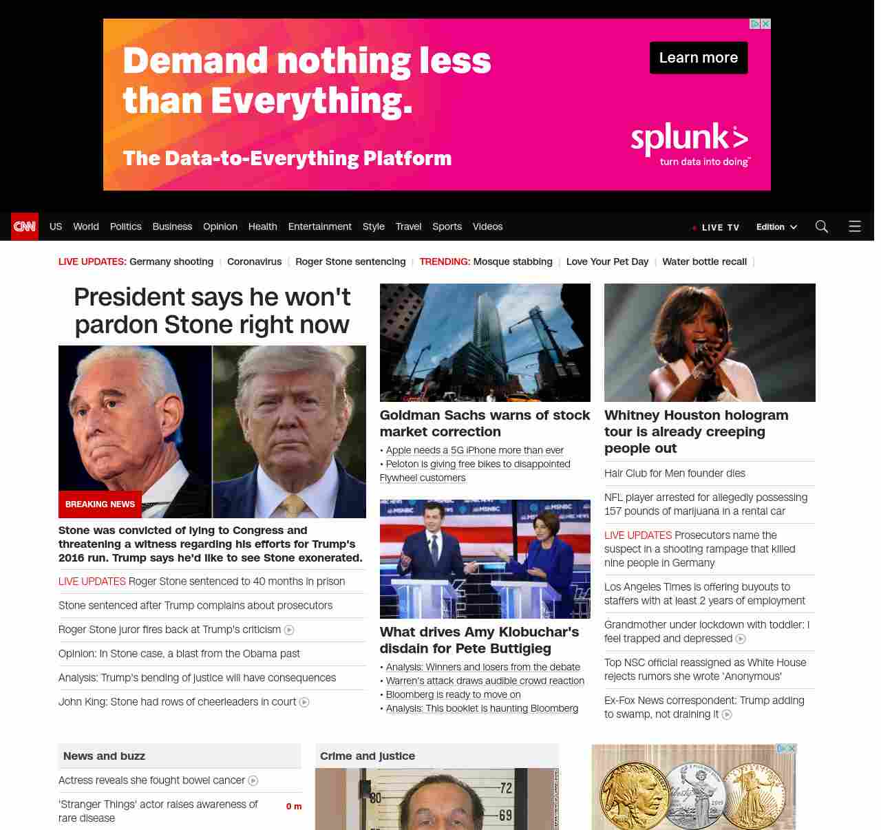 || screaming-banner-text banner-text-size–char-47″ data-analytics=”_list-hierarchical-xs_article_”> President says he won’t pardon Stone right now ||” , title: “CNN – Breaking News, Latest News and Videos” , siblings: {“articleList”:[{“uri”:”/2020/02/20/politics/donald-trump-roger-stone-exoneration/index.html”,”headline”:”u003cstrong>Stone was convicted of lying to Congress and threatening a witness regarding his efforts for Trump’s 2016 run. Trump says he’d like to see Stone exonerated. u003c/strong>”,”thumbnail”:”//cdn.cnn.com/cnnnext/dam/assets/200220125342-trump-stone-unhappy-split-small-11.jpg”,”duration”:””,”description”:”u003cstrong>⢠u003c/strong>u003ca href=”https://www.cnn.com/politics/live-news/roger-stone-sentencing/index.html” target=”_blank”>u003cstrong>Live updates: u003c/strong>Roger Stone sentenced to prisonu003c/a>u003cbr />â¢u003ca href=”https://www.cnn.com/videos/politics/2020/02/20/roger-stone-juror-seth-cousins-sot-vpx-cuomo-cpt.cnn” target=”_blank”> Watch: Roger Stone juror fires back at Trump’s criticismu003c/a>u003cbr />⢠u003ca href=”https://www.cnn.com/2020/02/19/opinions/stone-barr-doj-opinion-zeldin/index.html” target=”_blank”>Opinion: In Stone case, a blast from the Obama pastu003c/a>u003cbr />⢠u003ca href=”https://www.cnn.com/2020/02/20/politics/trump-department-of-justice-william-barr/index.html” target=”_blank”>Analysis: Trump’s bending of justice will have consequencesu003c/a>”,”layout”:””