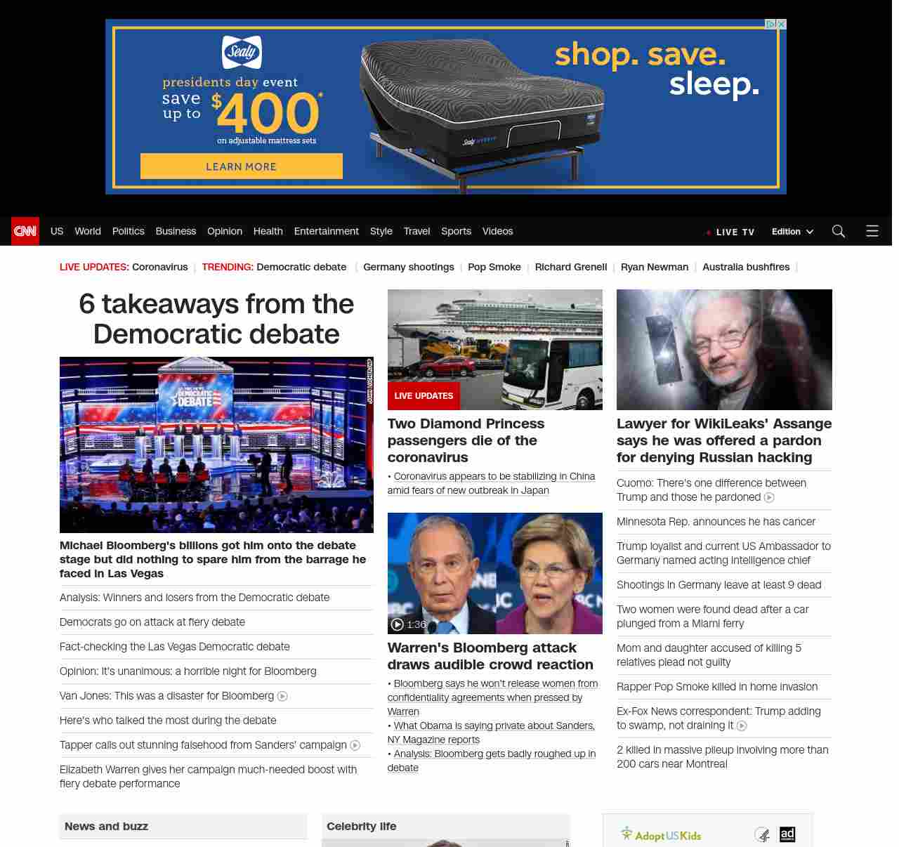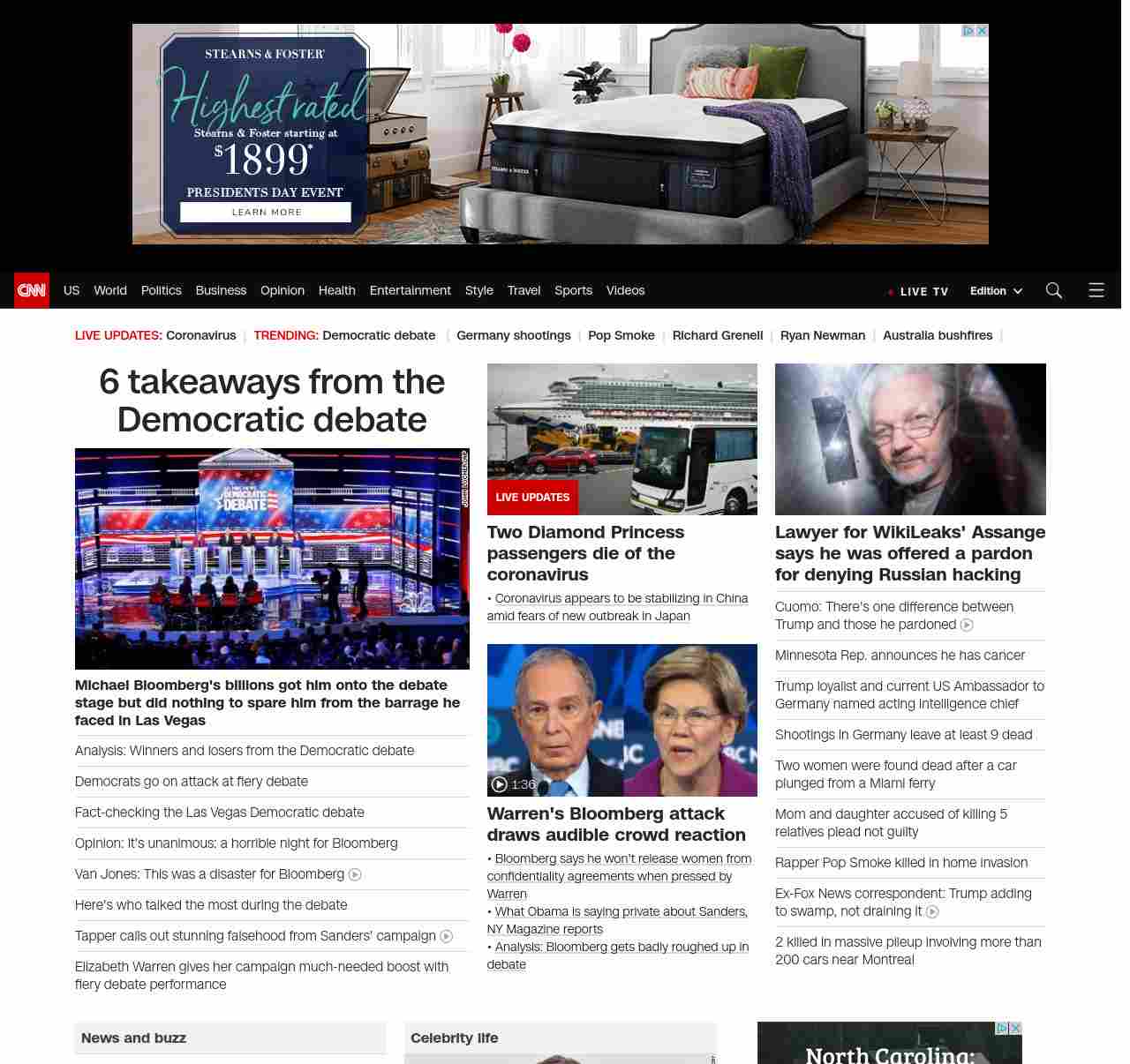 || screaming-banner-text banner-text-size–char-41″ data-analytics=”_list-hierarchical-xs_article_”> 6 takeaways from the Democratic debate ||” , title: “CNN – Breaking News, Latest News and Videos” , siblings: {“articleList”:[{“uri”:”/2020/02/20/politics/nevada-debate-recap/index.html”,”headline”:”u003cstrong>Michael Bloomberg’s billions got him onto the debate stage but did nothing to spare him from the barrage he faced in Las Vegasu003c/strong>”,”thumbnail”:”//cdn.cnn.com/cnnnext/dam/assets/200219233212-14-msnbc-dem-debate-0219-small-11.jpg”,”duration”:””,”description”:”u003ca href=”https://www.cnn.com/election/2020/candidate/bloomberg” target=”_blank”>Michael Bloombergu003c/a>’s billions got him onto the debate stage — but did nothing to spare him from the barrage he faced Wednesday night here in Las Vegas.”,”layout”:””