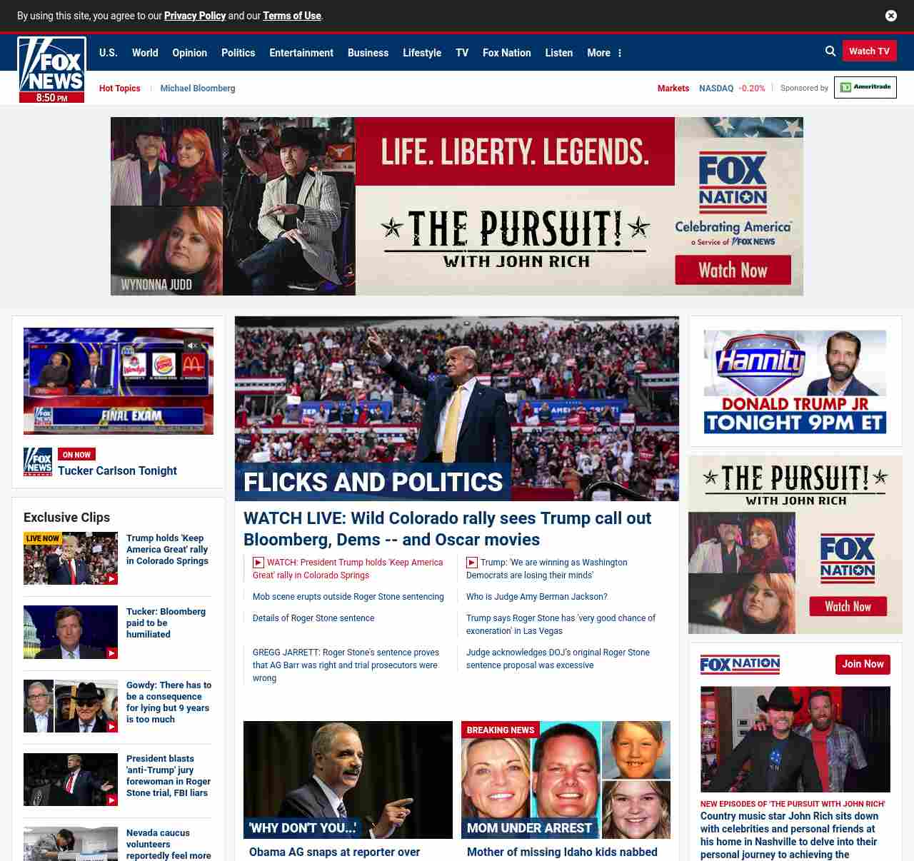 =”https://www.foxnews.com/politics/trump-colorado-rally-democrats-debate“>WATCH LIVE: Wild Colorado rally sees Trump call out Bloomberg, Dems — and Oscar movies