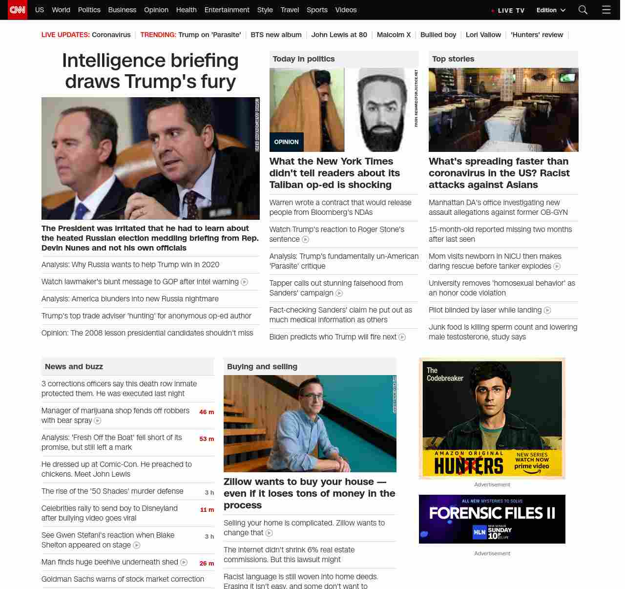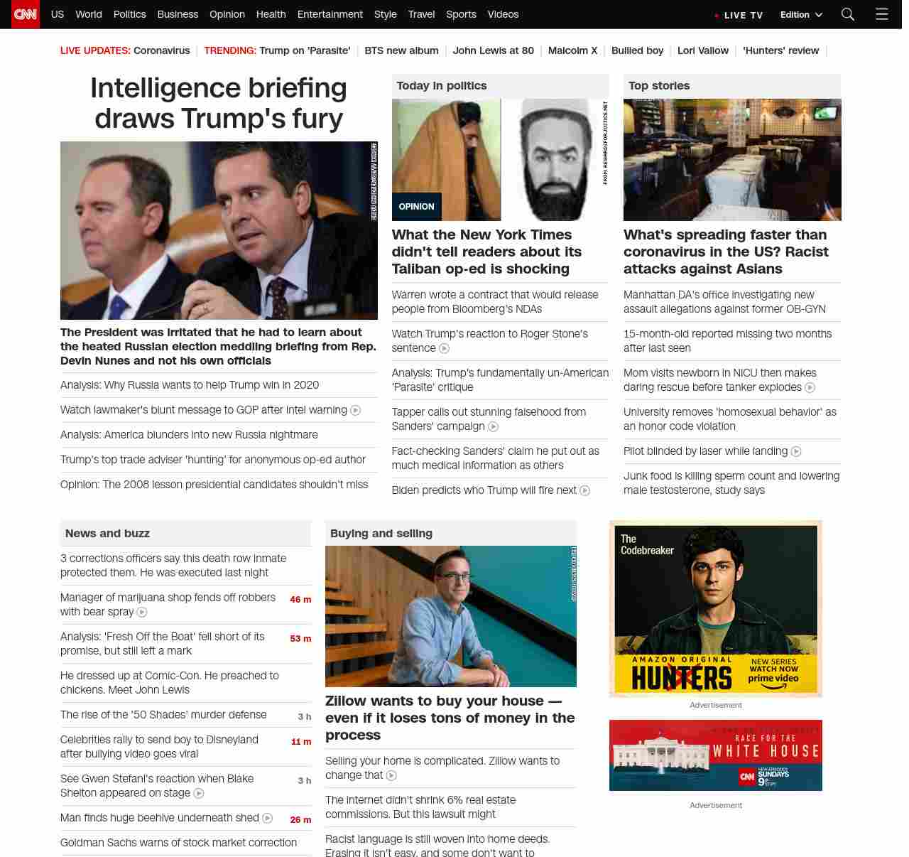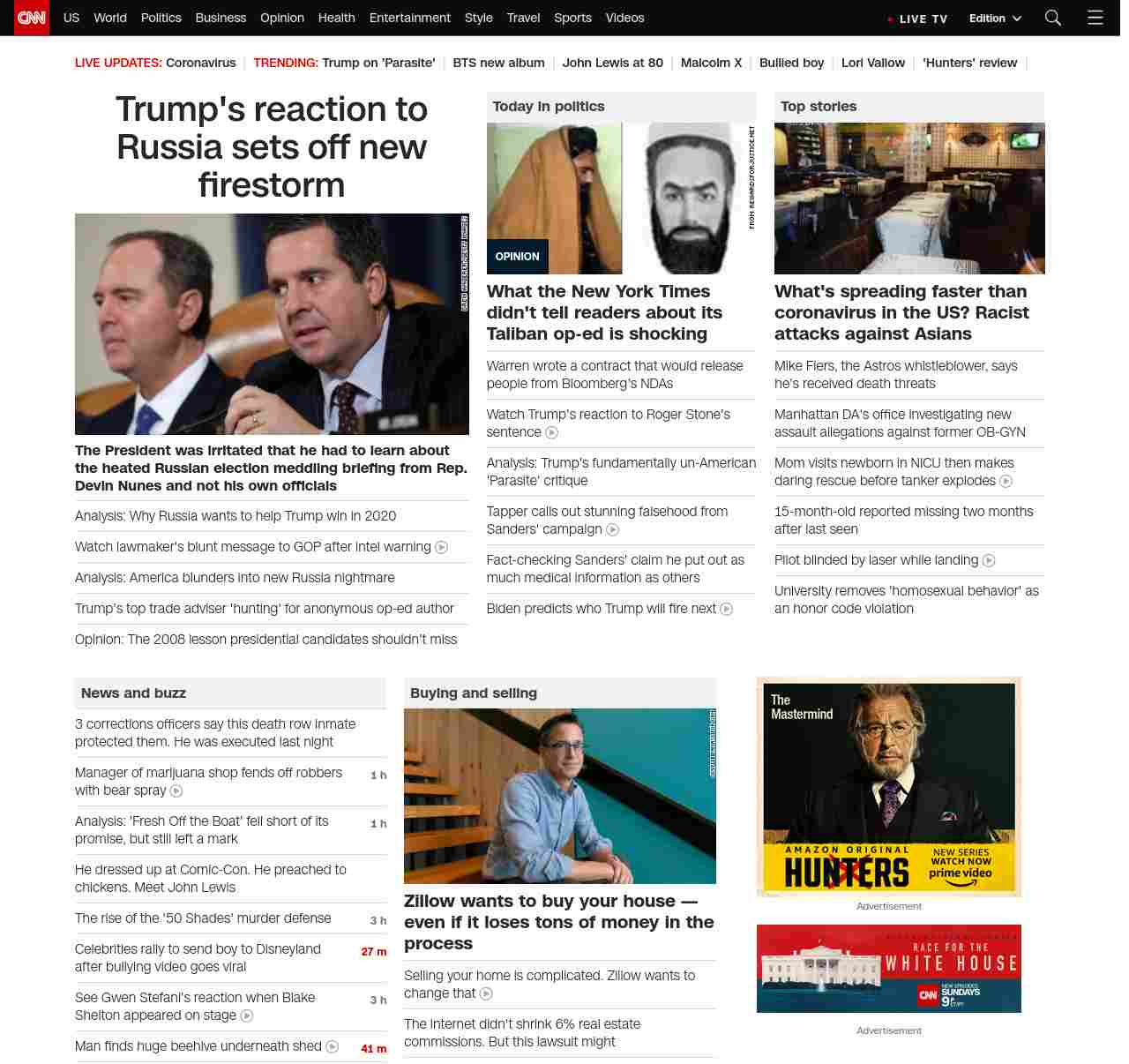 || screaming-banner-text banner-text-size–char-47″ data-analytics=”_list-hierarchical-xs_article_”> Trump’s reaction to Russia sets off firestorm ||” , title: “CNN – Breaking News, Latest News and Videos” , siblings: {“articleList”:[{“uri”:”/2020/02/21/politics/intelligence-briefing-republican-behind-the-scenes/index.html”,”headline”:”u003cstrong>The President was irritated that he had to learn about the heated Russian election meddling briefing from Rep. Devin Nunesu003c/strong> u003cstrong>and not his own officialsu003c/strong>”,”thumbnail”:”//cdn.cnn.com/cnnnext/dam/assets/191120192601-72-impeachment-hearing-1120-nunes-small-11.jpg”,”duration”:””,”description”:”Republican lawmakers vocally objected to an intelligence briefing assessment that Russia prefers President Donald Trump to win in 2020 â and Rep. Devin Nunes of California, a close Trump ally, told the President about the election meddling briefing, according to a person familiar with the matter afterward.”,”layout”:””