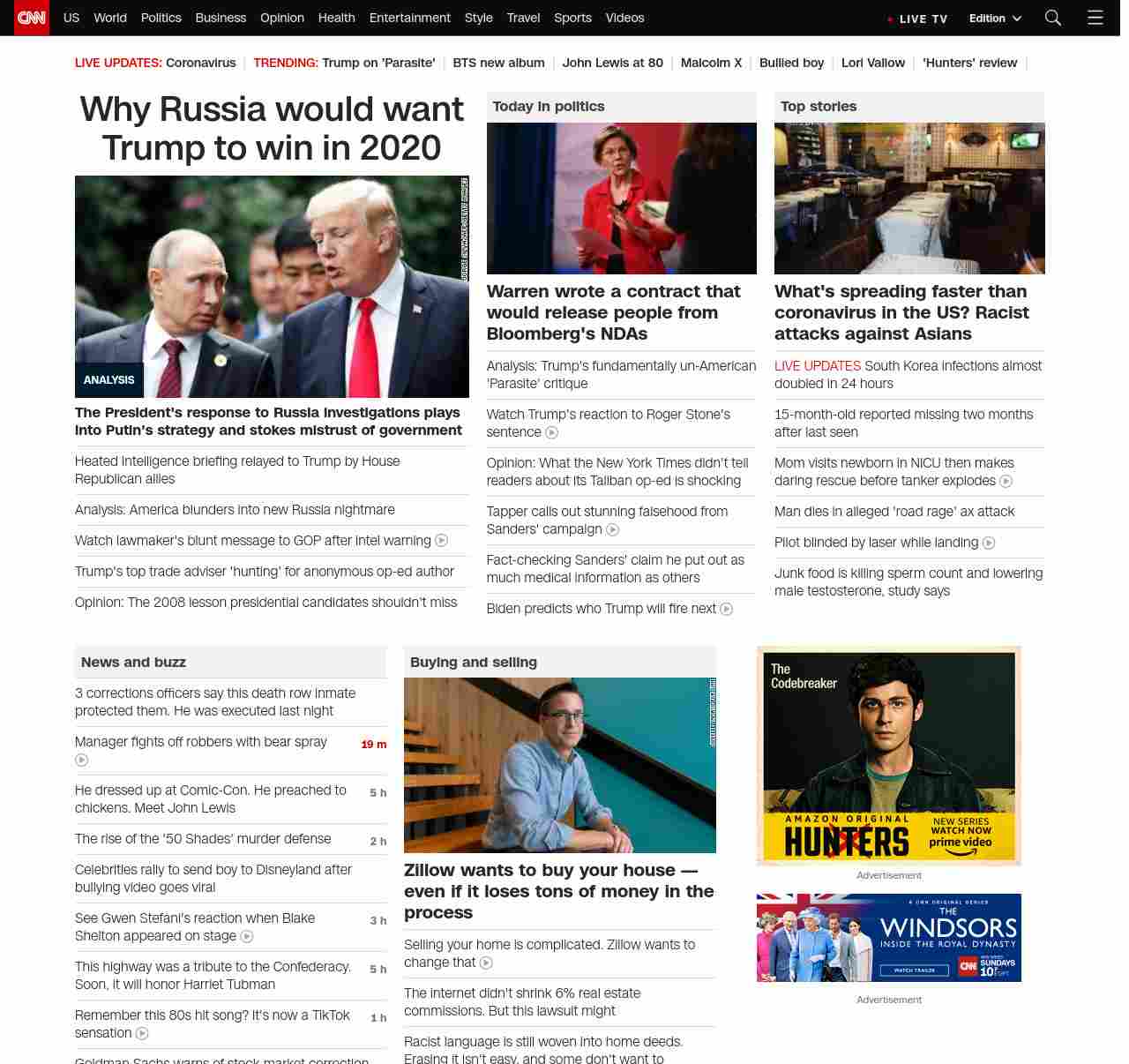 || screaming-banner-text banner-text-size–char-35″ data-analytics=”_list-hierarchical-xs_article_”> Why Russia wants to help Trump win ||” , title: “CNN – Breaking News, Latest News and Videos” , siblings: {“articleList”:[{“uri”:”/2020/02/21/europe/putin-trump-2020-election-analysis-intl/index.html”,”headline”:”u003cstrong>The President’s response to Russia investigations plays into Putin’s strategy and stokes mistrust of governmentu003c/strong>”,”thumbnail”:”//cdn.cnn.com/cnnnext/dam/assets/191230193403-putin-trump-file-new-small-11.jpg”,”duration”:””,”description”:”It’s a familiar plot line: Top intelligence officials deliver a warning to lawmakers that Russia wants to interfere in the upcoming presidential election — and that the Kremlin’s u003ca href=”https://edition.cnn.com/2020/02/20/politics/trump-russia-intelligence-2020/index.html” target=”_blank”>preferred outcome is a win by President Donald Trumpu003c/a>.”,”layout”:””