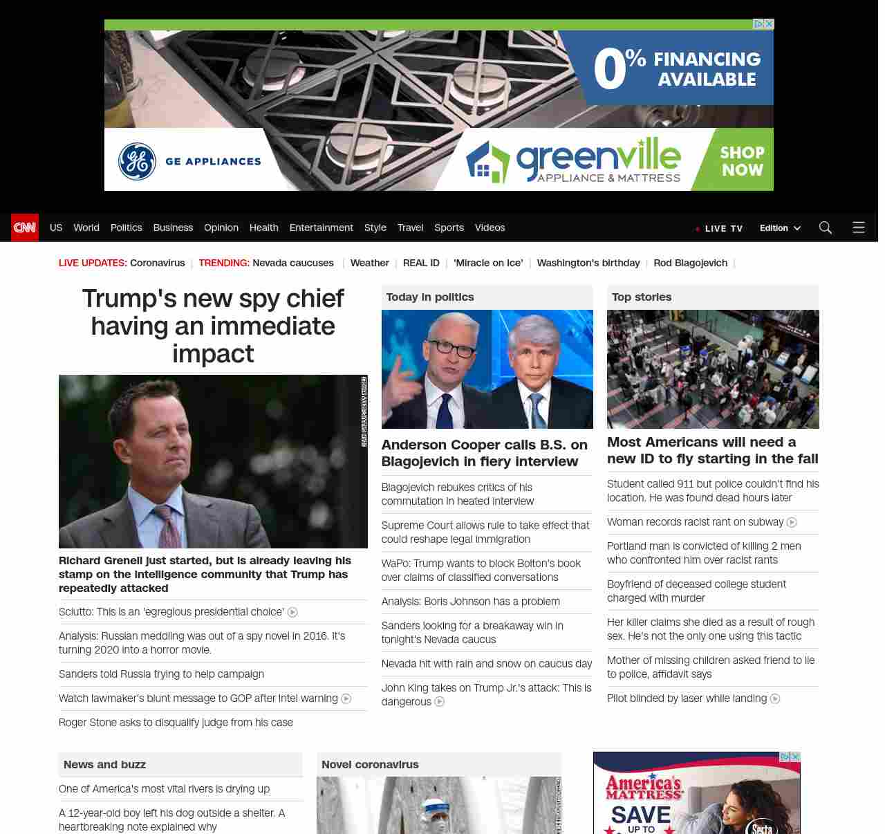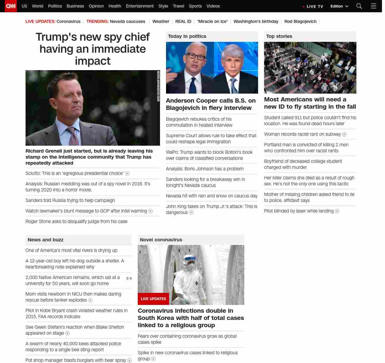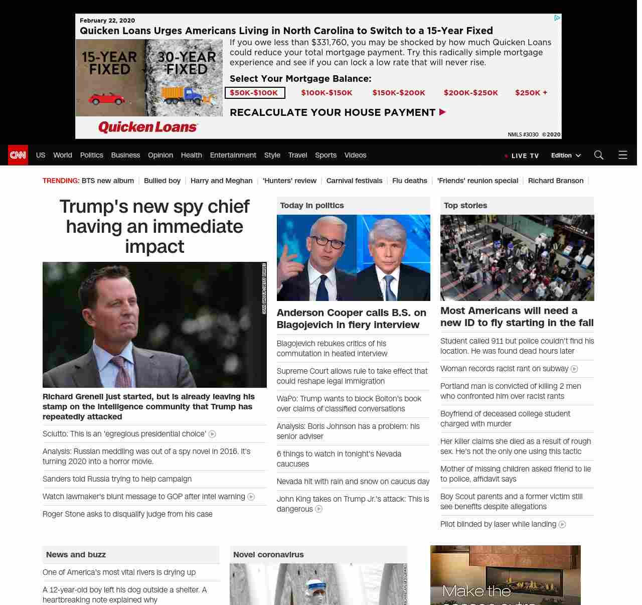|| screaming-banner-text banner-text-size–char-47″ data-analytics=”_list-hierarchical-xs_article_”> Trump’s new spy chief having an immediate impact ||” , title: “CNN – Breaking News, Latest News and Videos” , siblings: {“articleList”:[{“uri”:”/2020/02/22/politics/grenell-impact-diplomatic-community/index.html”,”headline”:”u003cstrong>Richard Grenell just started, but is already leaving his stamp on the intelligence community that Trump has repeatedly attackedu003c/strong>”,”thumbnail”:”//cdn.cnn.com/cnnnext/dam/assets/200221154039-02-richard-grenell-file-small-11.jpg”,”duration”:””,”description”:”Richard Grenell, the u003ca href=”https://www.cnn.com/2020/02/19/politics/trump-grennell-acting-dni/index.html” target=”_blank”>newly installedu003c/a> acting director of American spy agencies and loyalist to President Donald Trump, began his temporary tenure by moving aggressively to put his stamp on the intelligence community that Trump has repeatedly attacked. “,”layout”:””