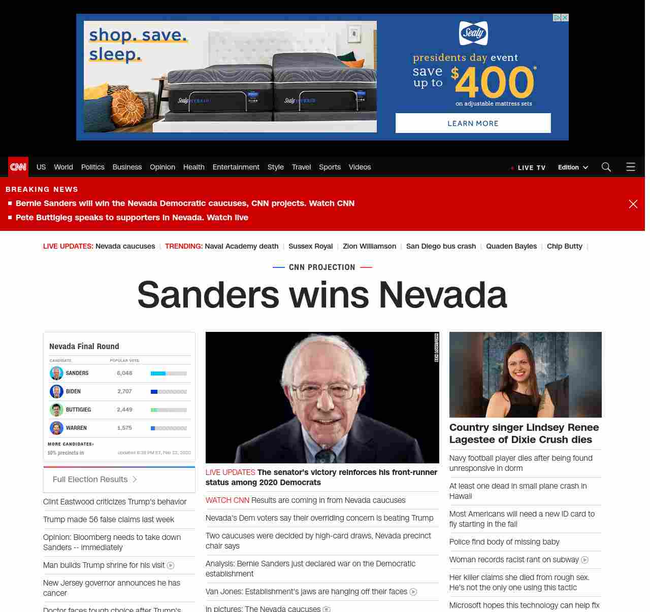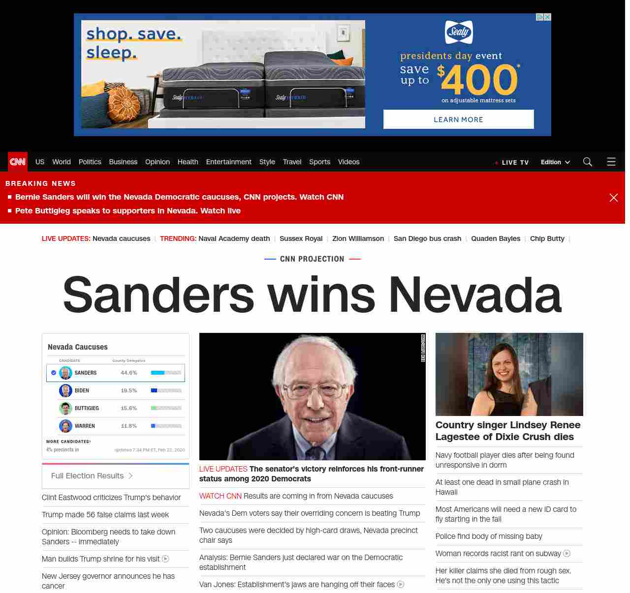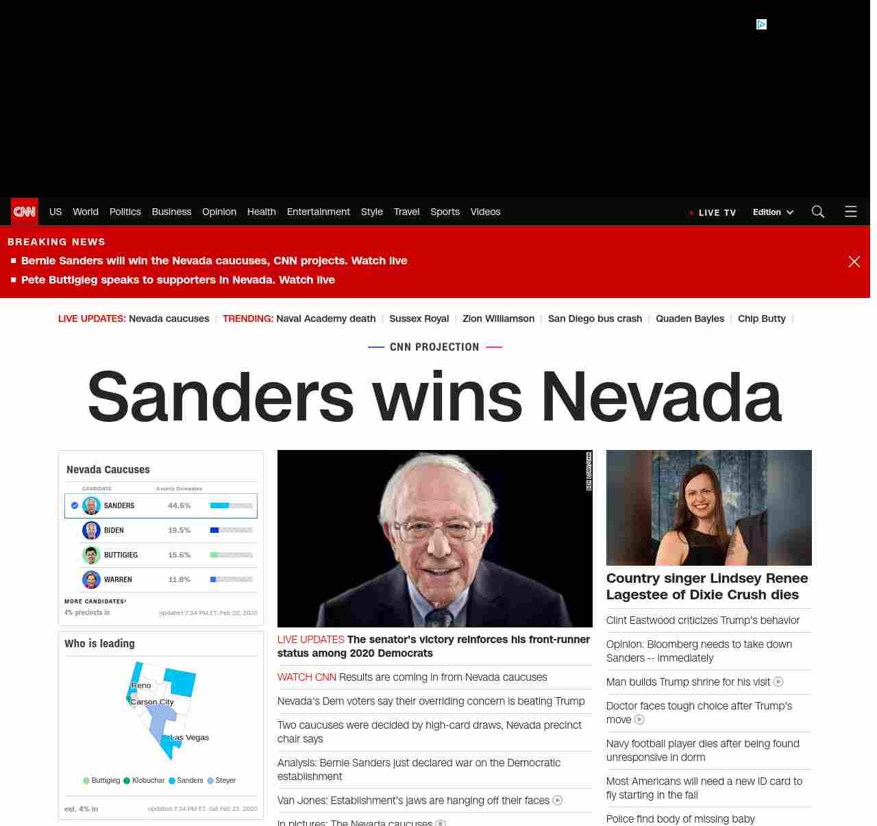 || banner-text–maximized banner-text-size–char-20″> Sanders wins Nevada ||” , title: “CNN – Breaking News, Latest News and Videos” , siblings: {“articleList”:[{“uri”:”/politics/live-news/nevada-caucuses-live-results-updates-2020/index.html”,”headline”:”u003cstrong>The senator’s victory reinforces his front-runner status among 2020 Democratsu003c/strong>”,”thumbnail”:”//cdn.cnn.com/cnnnext/dam/assets/200222202222-bernie-speaks-0222-screengrab-small-11.jpg”,”duration”:””,”description”:””,”layout”:””