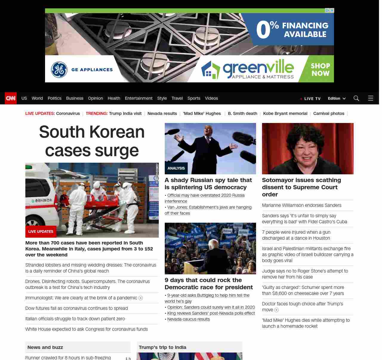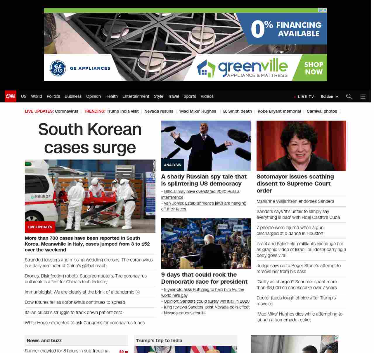 || screaming-banner-text banner-text-size–char-26″ data-analytics=”_list-hierarchical-xs_hyperlink_”> South Korean cases surge ||” , title: “CNN – Breaking News, Latest News and Videos” , siblings: {“articleList”:[{“uri”:”/2020/02/24/business/china-coronavirus-global-impact-intl/index.html”,”headline”:”Stranded lobsters and missing wedding dresses: The coronavirus is a daily reminder of China’s global reach”,”thumbnail”:”//cdn.cnn.com/cnnnext/dam/assets/200221172316-geraldton-fishermens-co-operative-australia-rock-lobster-file-restricted-small-11.jpg”,”duration”:””,”description”:”In the city of Geraldton on Australia’s western coast, a backlog of rock lobsters were recently stuck waiting in their tanks, with no market to go to. In New Jersey, a boutique has been unable to fill all its wedding dress orders. A small business owner in London can’t source enough human hair extensions, wigs and weaves for its online sales.”,”layout”:””