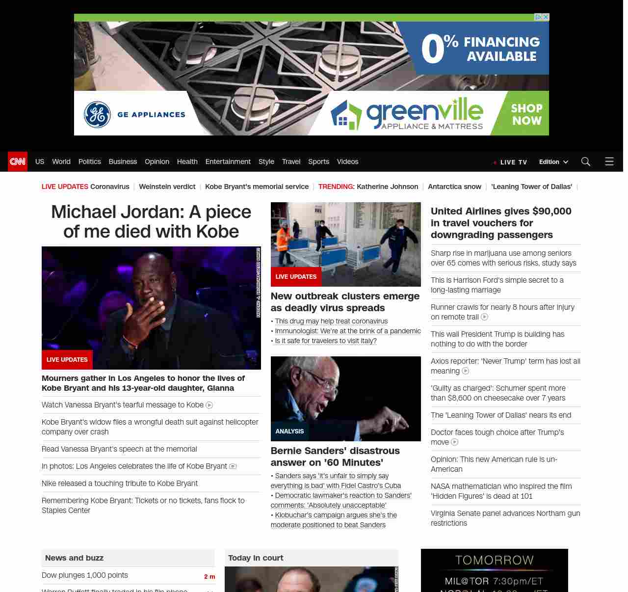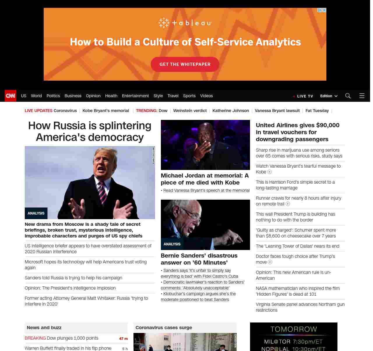|| screaming-banner-text banner-text-size–char-47″ data-analytics=”_list-hierarchical-xs_article_”> Michael Jordan: A piece of me died with Kobe ||” , title: “CNN – Breaking News, Latest News and Videos” , siblings: {“articleList”:[{“uri”:”/2020/02/24/politics/trump-russia-intelligence-democracy-discontent/index.html”,”headline”:”u003cstrong>New drama from Moscow is a shady tale of secret briefings, broken trust, mysterious intelligence, improbable characters and purges of US spy chiefsu003c/strong>”,”thumbnail”:”//cdn.cnn.com/cnnnext/dam/assets/200218135900-02-trump-0218-small-11.jpg”,”duration”:””,”description”:”The new Russia drama is a shady tale of secret briefings, compromised trust, mysterious intelligence, improbable characters with hidden agendas u003ca href=”https://www.cnn.com/2020/02/23/politics/intelligence-briefer-russian-interference-trump-sanders/index.html” target=”_blank”>and purges of American spy chiefs.u003c/a> But most importantly, this dark new revival of a saga that has ravaged US politics for four years is making it impossible to know what’s true anymore.”,”layout”:””
