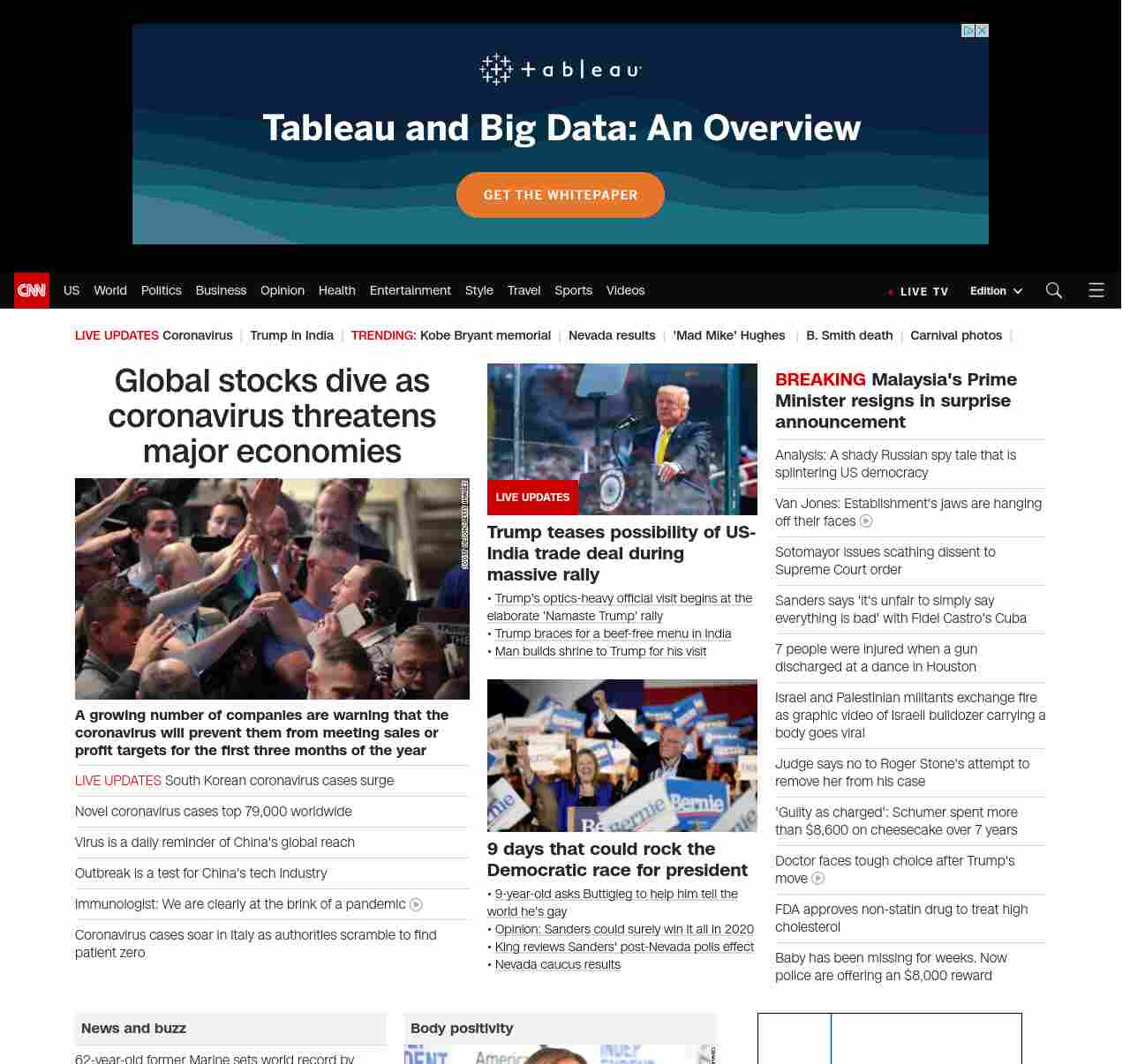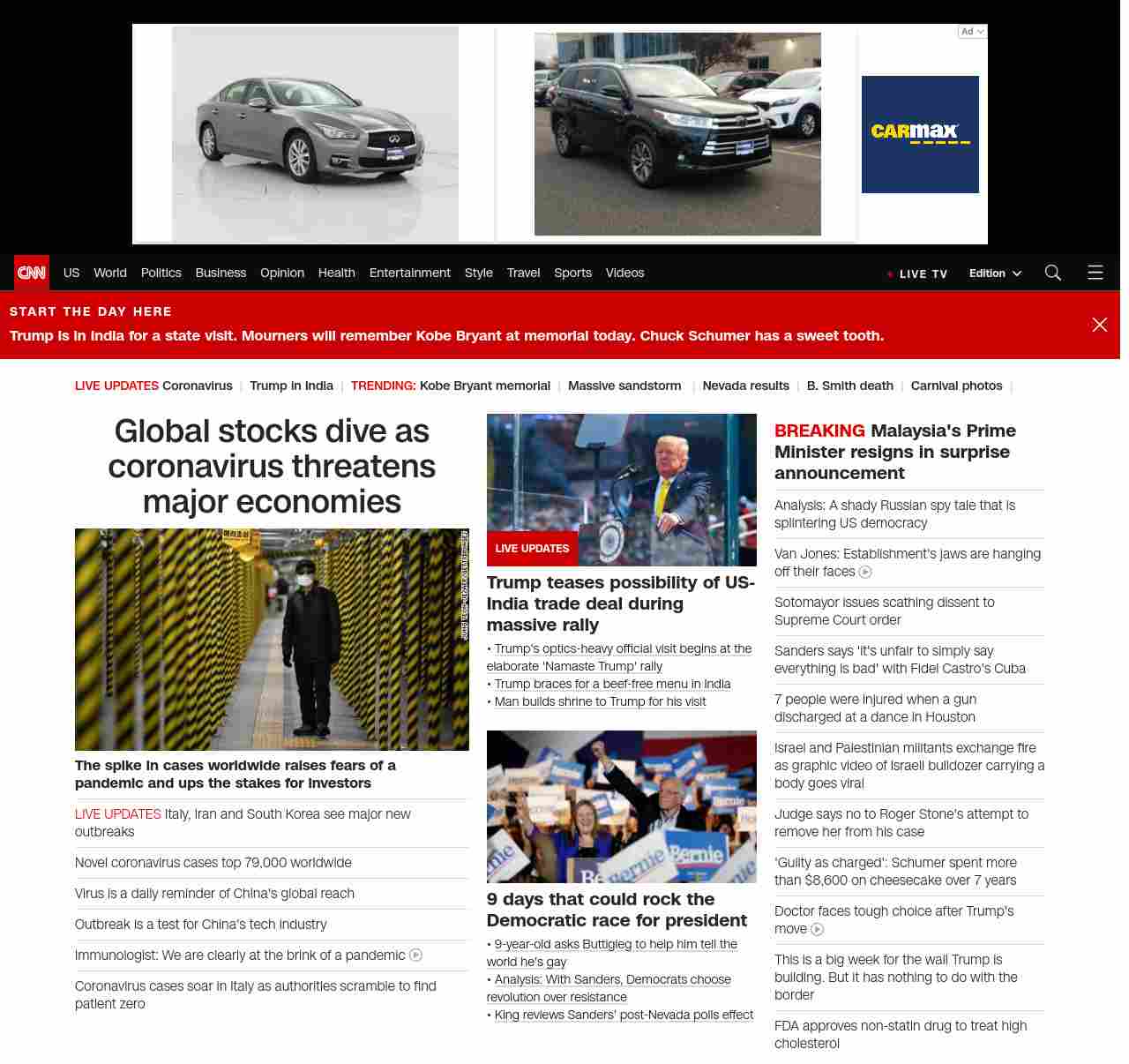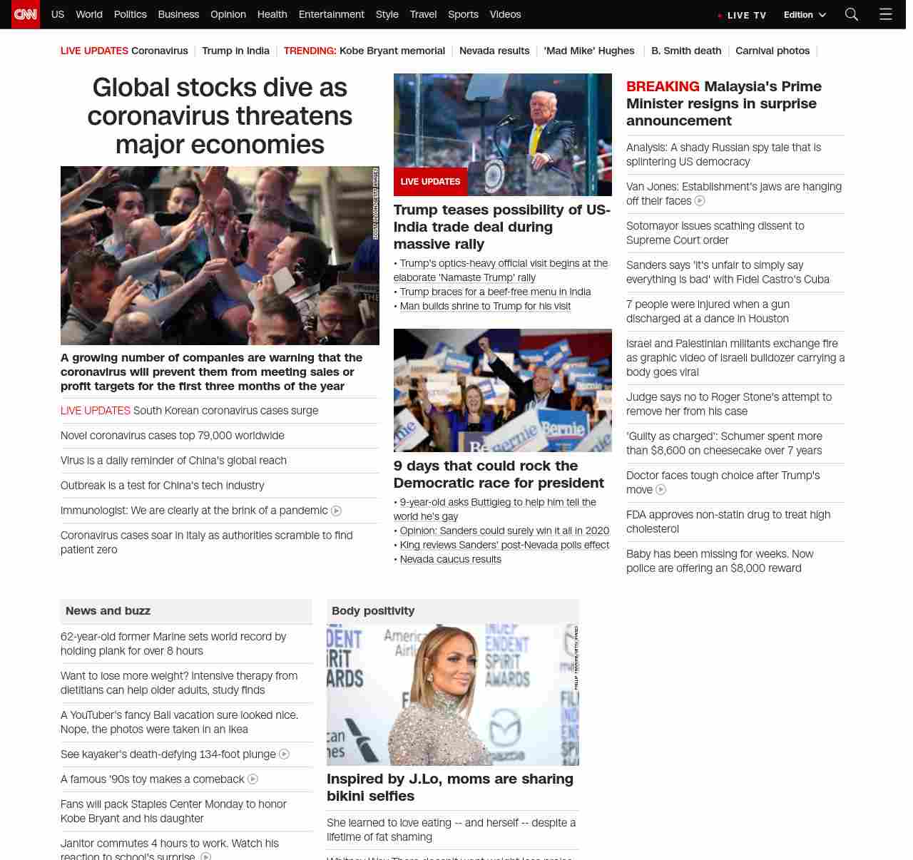 || screaming-banner-text banner-text-size–char-47″ data-analytics=”_list-hierarchical-xs_article_”> Global stocks dive as coronavirus threatens major economies ||” , title: “CNN – Breaking News, Latest News and Videos” , siblings: {“articleList”:[{“uri”:”/2020/02/23/business/stock-futures-coronavirus/index.html”,”headline”:”u003cstrong>The spike in the number of cases in Italy and South Korea, the world’s eighth and twelfth largest economies, raises fears of a pandemic u003c/strong>”,”thumbnail”:”//cdn.cnn.com/cnnnext/dam/assets/200224110707-coronavirus-south-korea-0222-small-11.jpg”,”duration”:””,”description”:”US stock futures dropped Sunday evening as the coronavirus outbreak continues to spread globally.”,”layout”:””