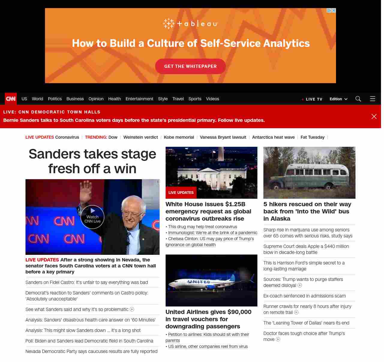 || screaming-banner-text banner-text-size–char-38″ data-analytics=”_list-hierarchical-xs_story_”> Sanders takes stage fresh off a win ||” , title: “CNN – Breaking News, Latest News and Videos” , siblings: {“articleList”:[{“uri”:”/politics/live-news/2020-democratic-town-hall-south-carolina-monday/index.html”,”headline”:”u003cstrong>After a strong showing in Nevada, the senator faces South Carolina voters at a CNN town hall before a key primary u003c/strong>”,”thumbnail”:”//cdn.cnn.com/cnnnext/dam/assets/200224210326-03-cnn-town-hall-0224-sanders-screengrab-small-11.jpg”,”duration”:””,”description”:””,”layout”:””
