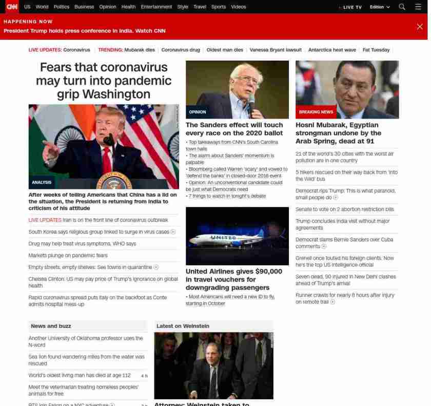|| screaming-banner-text banner-text-size–char-47″ data-analytics=”_list-hierarchical-xs_article_”> Fears that coronavirus may turn into pandemic grip Washington ||” , title: “CNN – Breaking News, Latest News and Videos” , siblings: {“articleList”:[{“uri”:”/2020/02/25/politics/coronavirus-us-donald-trump-washington-politics/index.html”,”headline”:”u003cstrong>After weeks of telling Americans that China has a lid on the situation, the President is returning from India to criticism of his attitudeu003c/strong>”,”thumbnail”:”//cdn.cnn.com/cnnnext/dam/assets/200225114934-11-trump-india-0225-roundtable-small-11.jpg”,”duration”:””,”description”:”Growing fears that the u003ca href=”https://www.cnn.com/2020/02/24/health/coronavirus-outbreak-pandemic-who-bn/index.html” target=”_blank”>coronavirus outbreak could turn into a pandemicu003c/a> and reach the United States are challenging President Donald Trump’s sunny assurances that everything is under control.”,”layout”:””