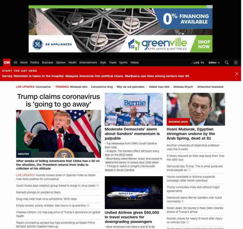 || screaming-banner-text banner-text-size–char-47″ data-analytics=”_list-hierarchical-xs_article_”> Trump claims coronavirus is ‘going to go away’ ||” , title: “CNN – Breaking News, Latest News and Videos” , siblings: {“articleList”:[{“uri”:”/2020/02/25/politics/coronavirus-us-donald-trump-washington-politics/index.html”,”headline”:”u003cstrong>After weeks of telling Americans that China has a lid on the situation, the President returns from India to criticism of his attitudeu003c/strong>”,”thumbnail”:”//cdn.cnn.com/cnnnext/dam/assets/200225114934-11-trump-india-0225-roundtable-small-11.jpg”,”duration”:””,”description”:”Growing fears that the u003ca href=”https://www.cnn.com/2020/02/24/health/coronavirus-outbreak-pandemic-who-bn/index.html” target=”_blank”>coronavirus outbreak could turn into a pandemicu003c/a> and reach the United States are challenging President Donald Trump’s sunny assurances that everything is under control.”,”layout”:””