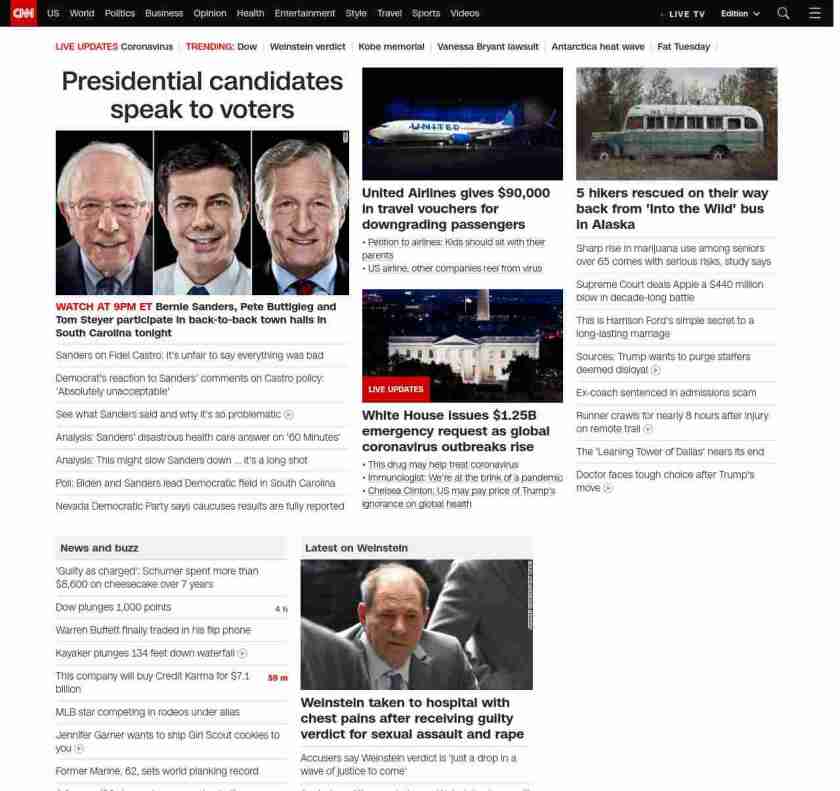 || screaming-banner-text banner-text-size–char-41″ data-analytics=”_list-hierarchical-xs_article_”> Presidential candidates speak to voters ||” , title: “CNN – Breaking News, Latest News and Videos” , siblings: {“articleList”:[{“uri”:”/politics/live-news/2020-democratic-town-hall-south-carolina-monday/index.html”,”headline”:”u003cstrong>Bernie Sanders, Pete Buttigieg and Tom Steyer participate in back-to-back town halls in South Carolina tonightu003c/strong>”,”thumbnail”:”//cdn.cnn.com/cnnnext/dam/assets/200224165401-sanders-buttigieg-steyer-split-small-11.jpg”,”duration”:””,”description”:””,”layout”:””