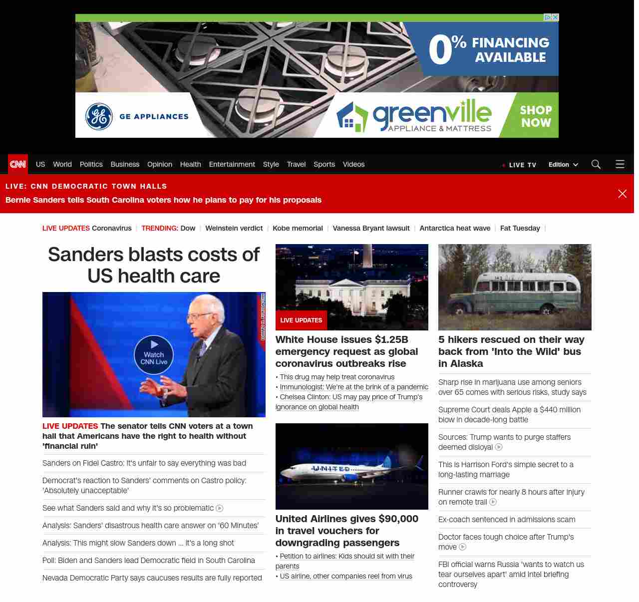 || screaming-banner-text banner-text-size–char-41″ data-analytics=”_list-hierarchical-xs_story_”> Sanders blasts costs of US health care ||” , title: “CNN – Breaking News, Latest News and Videos” , siblings: {“articleList”:[{“uri”:”/politics/live-news/2020-democratic-town-hall-south-carolina-monday/index.html”,”headline”:”u003cstrong>The senator tells CNN voters at a town hall that Americans have the right to health without ‘financial ruin’ u003c/strong>”,”thumbnail”:”//cdn.cnn.com/cnnnext/dam/assets/200224211439-05-cnn-town-hall-0224-sanders-small-11.jpg”,”duration”:””,”description”:””,”layout”:””