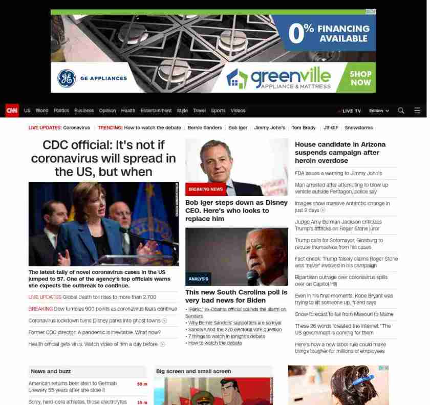 CNN1: FOXVCNN=|CDC official: It’s not if coronavirus will spread in the US, but when| ((lubuntu at wor3))