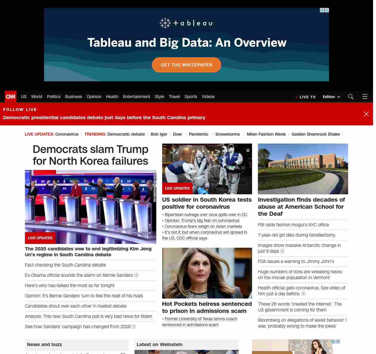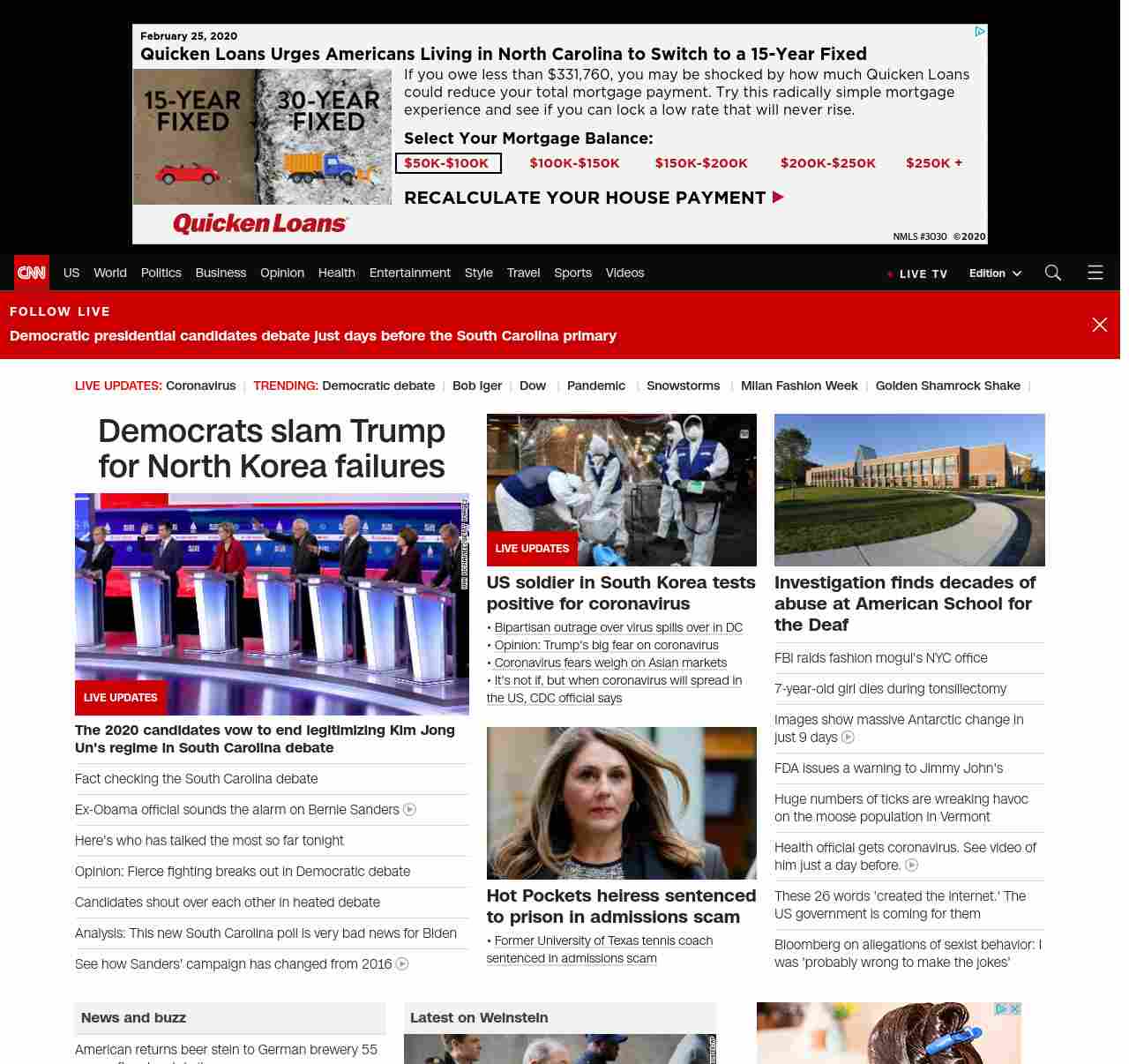 || screaming-banner-text banner-text-size–char-47″ data-analytics=”_list-hierarchical-xs_article_”> Democrats slam Trump for North Korea failures ||” , title: “CNN – Breaking News, Latest News and Videos” , siblings: {“articleList”:[{“uri”:”/politics/live-news/2020-democratic-debate-south-carolina/index.html”,”headline”:”u003cstrong>The 2020 candidates vow to end legitimizing Kim Jong Un’s regime in South Carolina debate u003c/strong>”,”thumbnail”:”//cdn.cnn.com/cnnnext/dam/assets/200225211825-17-cbs-news-debate-0225-small-11.jpg”,”duration”:””,”description”:””,”layout”:””