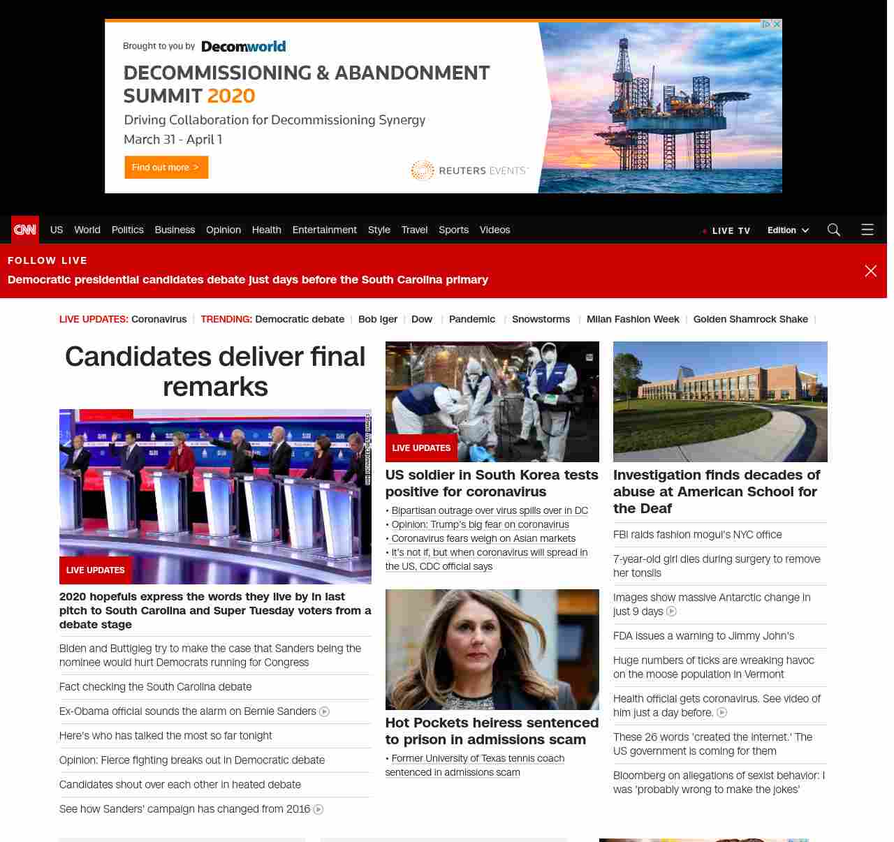 || screaming-banner-text banner-text-size–char-35″ data-analytics=”_list-hierarchical-xs_article_”> Candidates deliver final remarks ||” , title: “CNN – Breaking News, Latest News and Videos” , siblings: {“articleList”:[{“uri”:”/politics/live-news/2020-democratic-debate-south-carolina/index.html”,”headline”:”u003cstrong>2020 hopefuls express the words they live by in last pitch to South Carolina and Super Tuesday voters from a debate stageu003c/strong>”,”thumbnail”:”//cdn.cnn.com/cnnnext/dam/assets/200225211825-17-cbs-news-debate-0225-small-11.jpg”,”duration”:””,”description”:””,”layout”:””