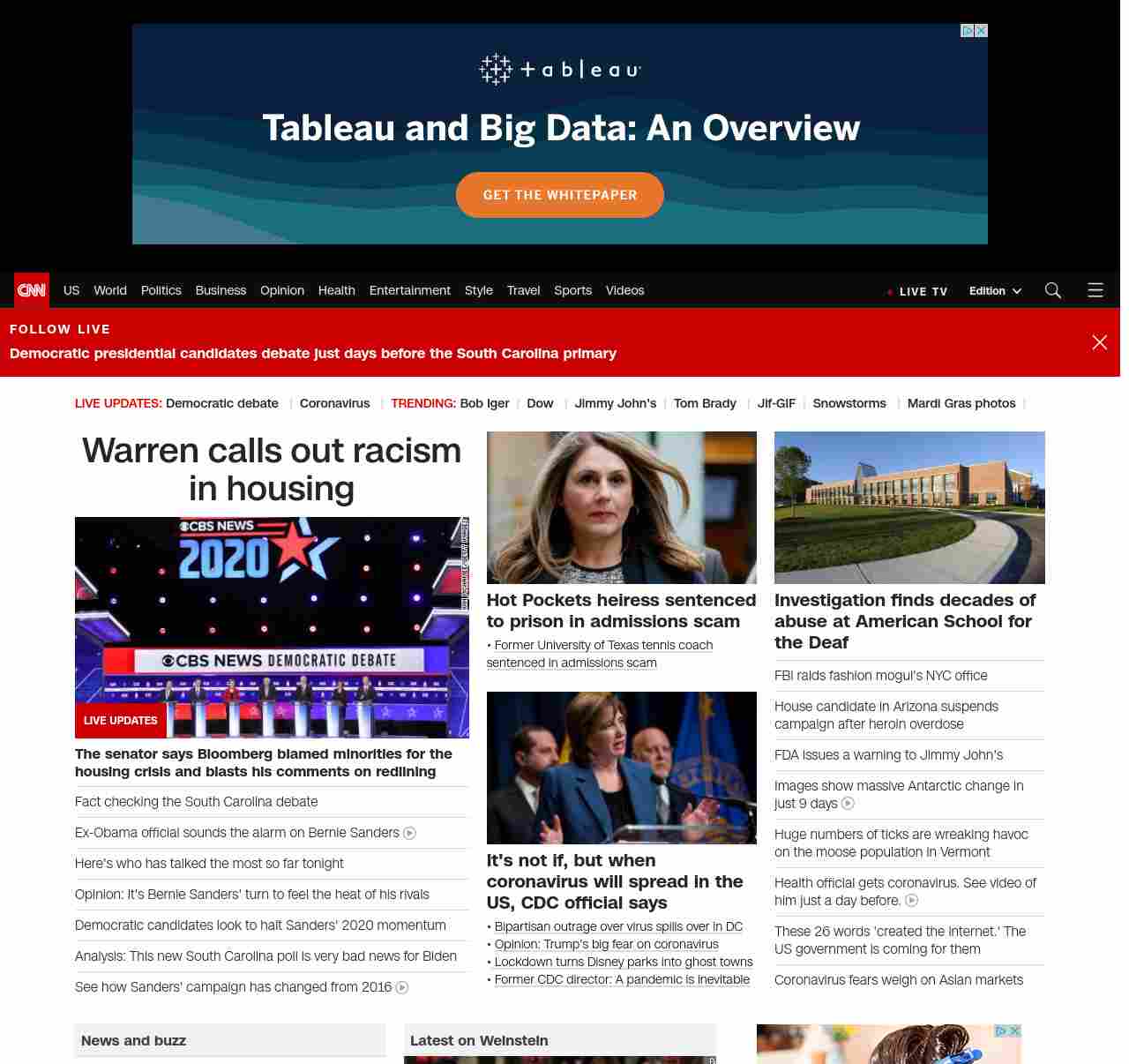 || screaming-banner-text banner-text-size–char-35″ data-analytics=”_list-hierarchical-xs_article_”> Warren calls out racism in housing ||” , title: “CNN – Breaking News, Latest News and Videos” , siblings: {“articleList”:[{“uri”:”/politics/live-news/2020-democratic-debate-south-carolina/index.html”,”headline”:”u003cstrong>The senator says Bloomberg blamed minorities for the housing crisis and blasts his comments on redlining u003c/strong>”,”thumbnail”:”//cdn.cnn.com/cnnnext/dam/assets/200225201233-04-cbs-news-debate-0225-candidates-podium-small-11.jpg”,”duration”:””,”description”:””,”layout”:””