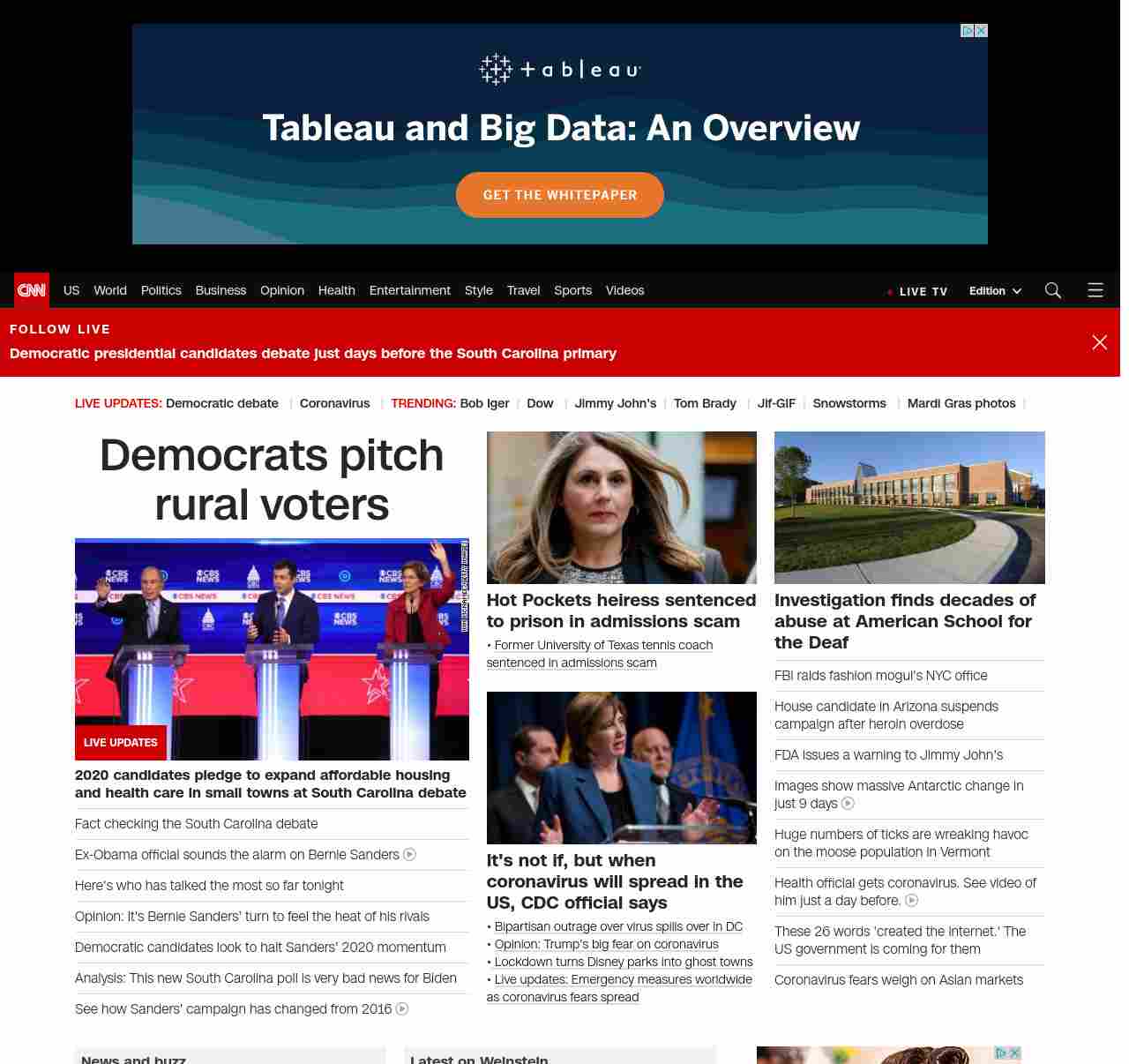 || screaming-banner-text banner-text-size–char-29″ data-analytics=”_list-hierarchical-xs_article_”> Democrats pitch rural voters ||” , title: “CNN – Breaking News, Latest News and Videos” , siblings: {“articleList”:[{“uri”:”/politics/live-news/2020-democratic-debate-south-carolina/index.html”,”headline”:”u003cstrong>2020 candidates pledge to expand affordable housing and health care in small towns at South Carolina debateu003c/strong> “,”thumbnail”:”//cdn.cnn.com/cnnnext/dam/assets/200225203959-11-cbs-news-debate-0225-candidates-small-11.jpg”,”duration”:””,”description”:””,”layout”:””