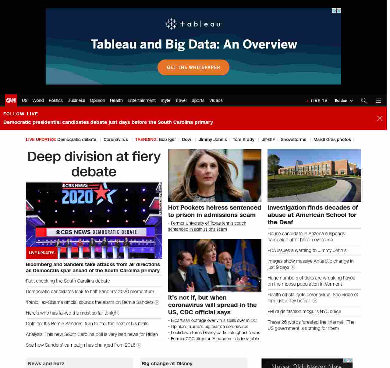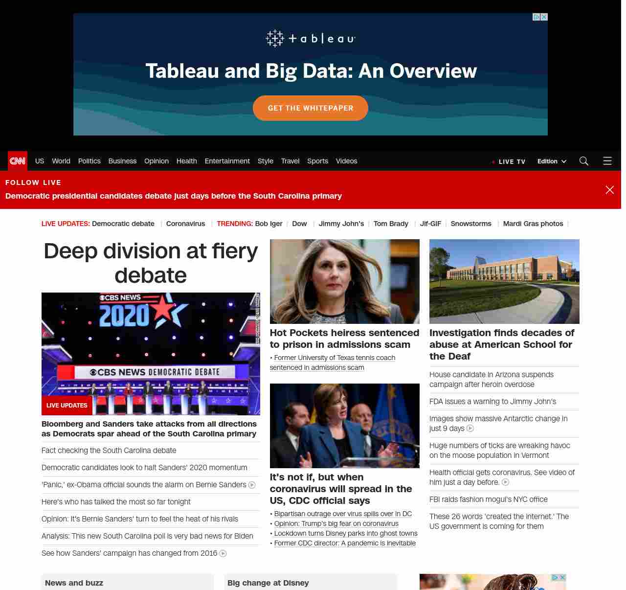|| screaming-banner-text banner-text-size–char-32″ data-analytics=”_list-hierarchical-xs_article_”> Deep division at fiery debate ||” , title: “CNN – Breaking News, Latest News and Videos” , siblings: {“articleList”:[{“uri”:”/politics/live-news/2020-democratic-debate-south-carolina/index.html”,”headline”:”Bloomberg and Sanders take attacks from all directions as Democrats spar ahead of the South Carolina primary “,”thumbnail”:”//cdn.cnn.com/cnnnext/dam/assets/200225201233-04-cbs-news-debate-0225-candidates-podium-small-11.jpg”,”duration”:””,”description”:””,”layout”:””