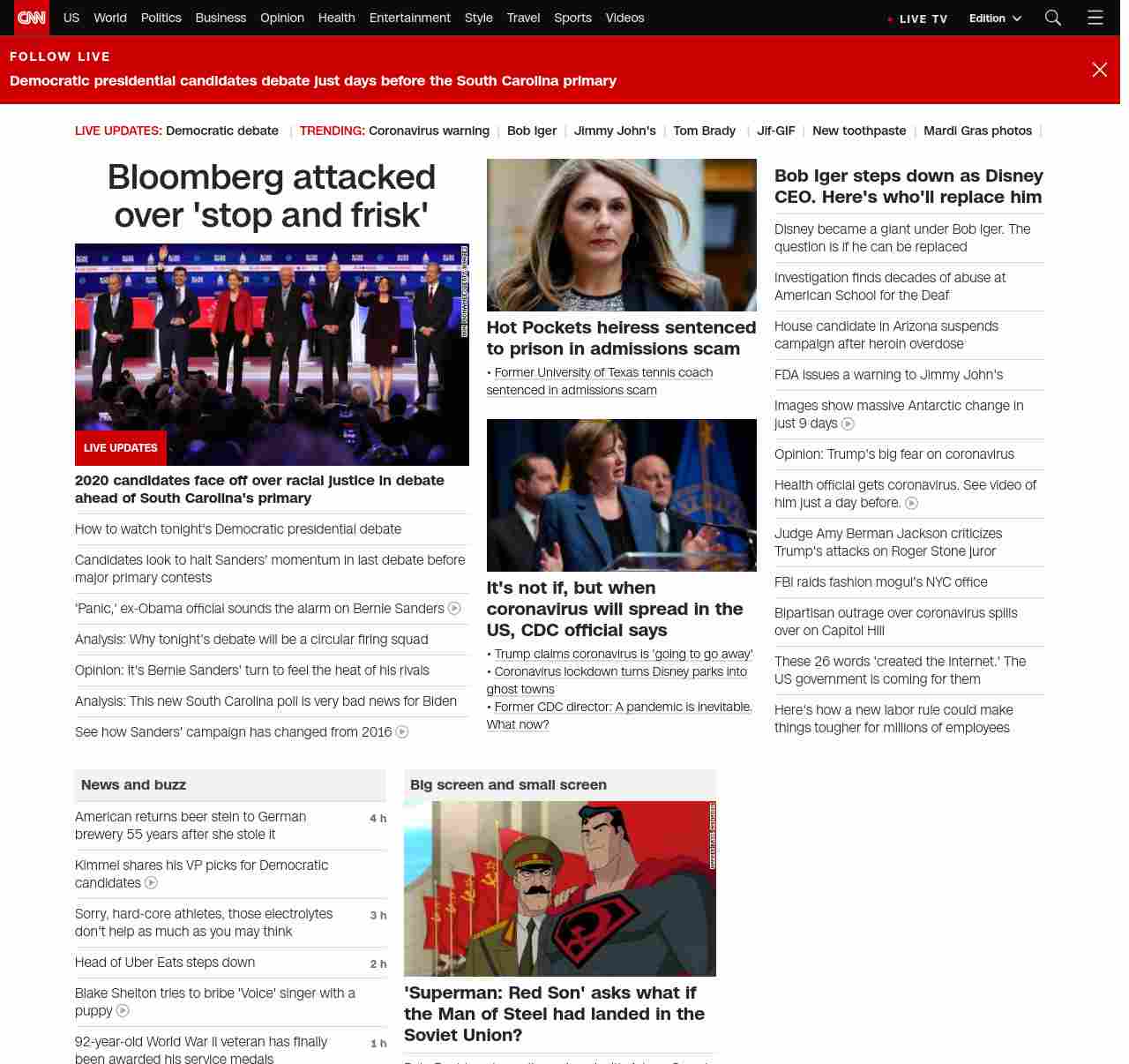 || screaming-banner-text banner-text-size–char-41″ data-analytics=”_list-hierarchical-xs_article_”> Bloomberg attacked over ‘stop and frisk’ ||” , title: “CNN – Breaking News, Latest News and Videos” , siblings: {“articleList”:[{“uri”:”/politics/live-news/2020-democratic-debate-south-carolina/index.html”,”headline”:”u003cstrong>2020 candidates face off over racial justice in debate ahead of South Carolina’s primary u003c/strong>”,”thumbnail”:”//cdn.cnn.com/cnnnext/dam/assets/200225200545-02-cbs-news-debate-0225-candidates-lined-up-small-11.jpg”,”duration”:””,”description”:””,”layout”:””