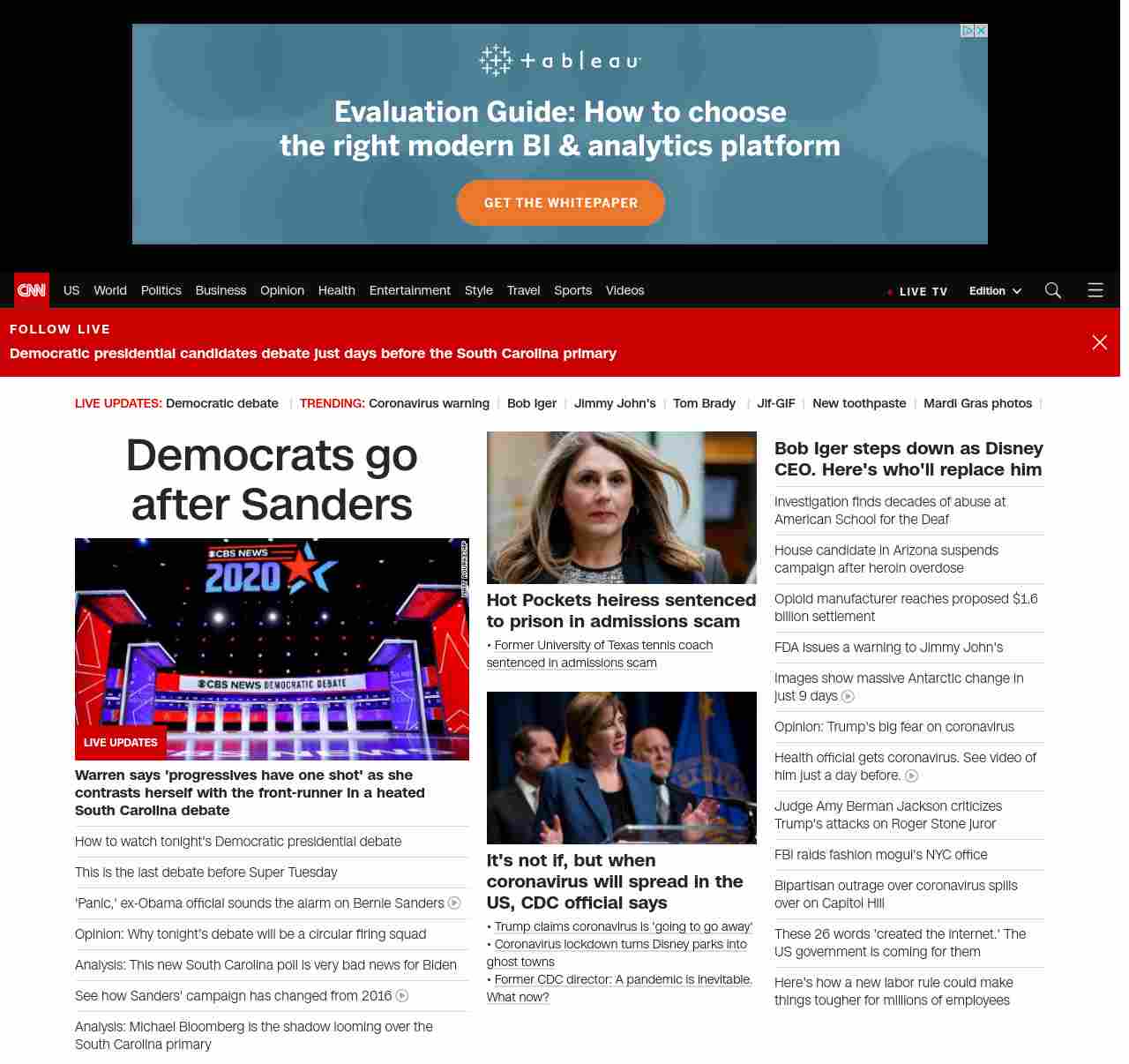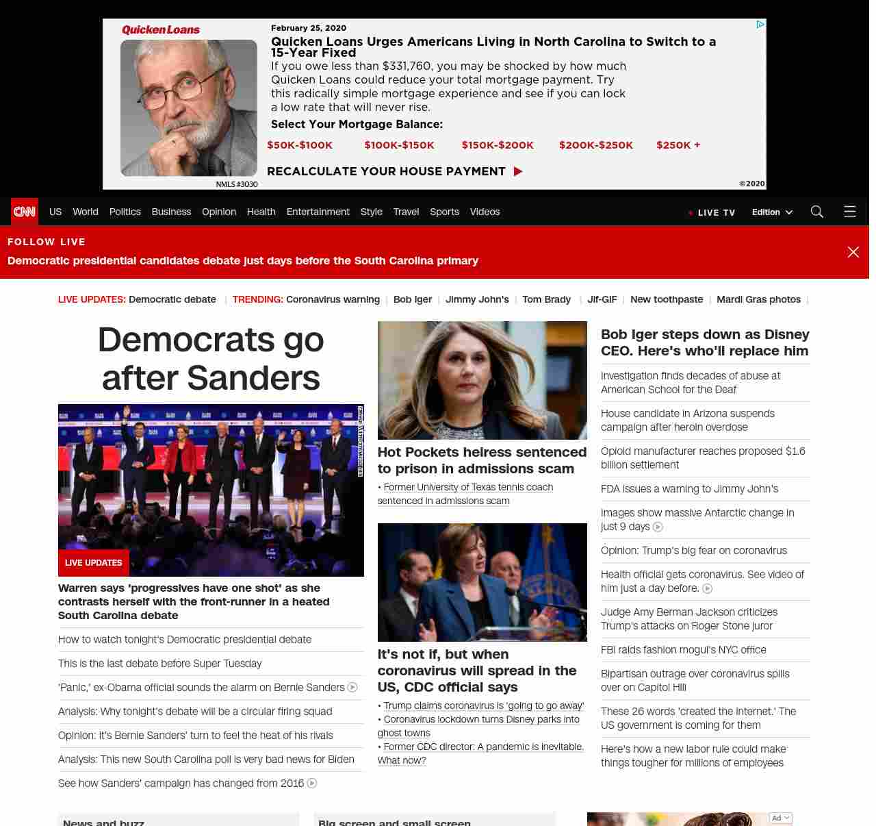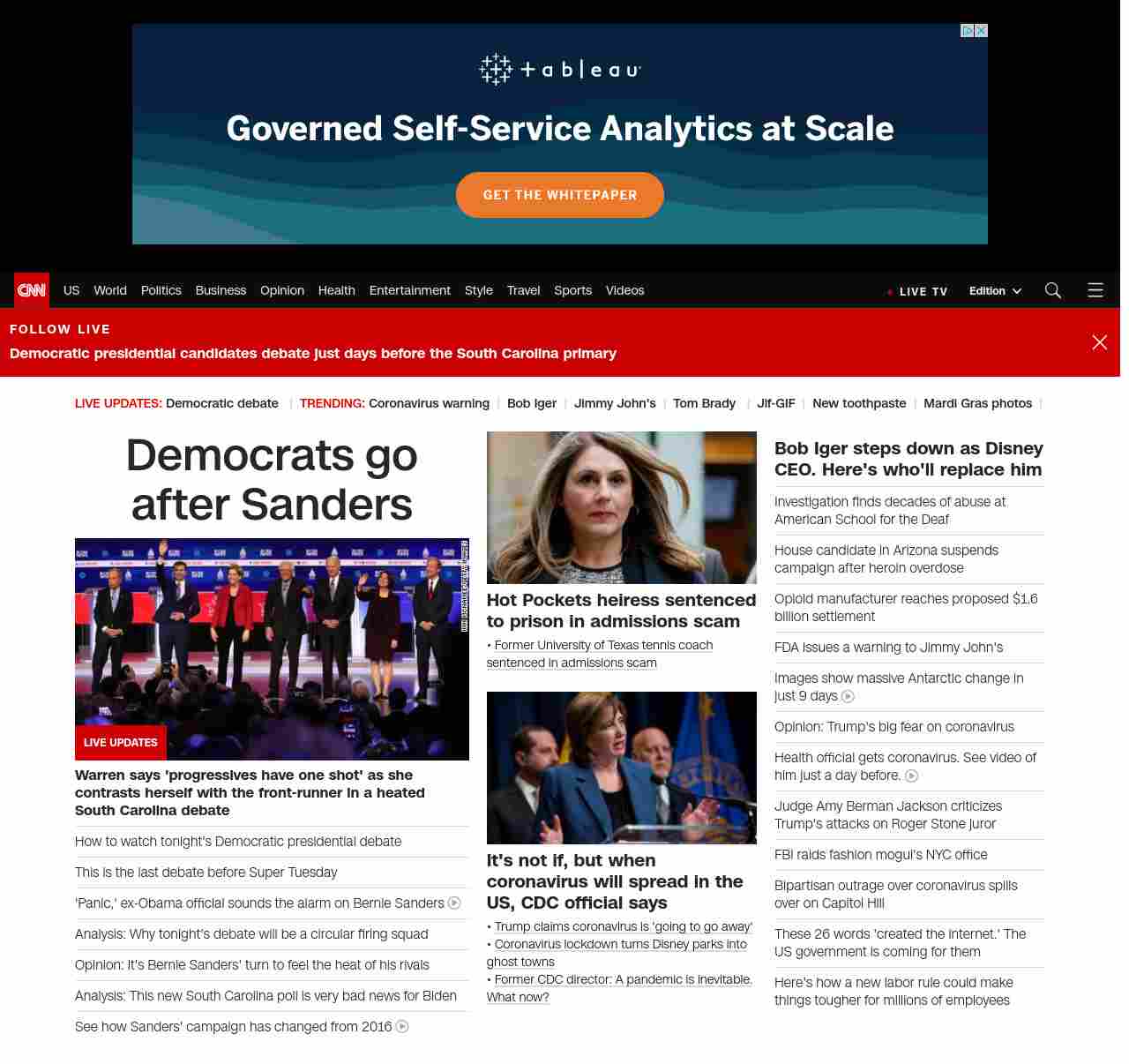 || screaming-banner-text banner-text-size–char-29″ data-analytics=”_list-hierarchical-xs_article_”> Democrats go after Sanders ||” , title: “CNN – Breaking News, Latest News and Videos” , siblings: {“articleList”:[{“uri”:”/politics/live-news/2020-democratic-debate-south-carolina/index.html”,”headline”:”u003cstrong>Warren says ‘progressives have one shot’ as she contrasts herself with the front-runner in a heated South Carolina debate u003c/strong>”,”thumbnail”:”//cdn.cnn.com/cnnnext/dam/assets/200225200545-02-cbs-news-debate-0225-candidates-lined-up-small-11.jpg”,”duration”:””,”description”:””,”layout”:””