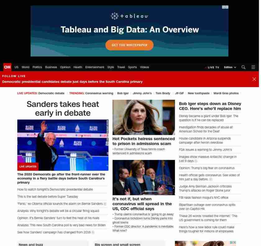 || screaming-banner-text banner-text-size–char-35″ data-analytics=”_list-hierarchical-xs_article_”> Sanders takes heat early in debate ||” , title: “CNN – Breaking News, Latest News and Videos” , siblings: {“articleList”:[{“uri”:”/politics/live-news/2020-democratic-debate-south-carolina/index.html”,”headline”:”u003cstrong>The 2020 Democrats go after the front-runner over the economy in a fiery battle days before South Carolina’s primaryu003c/strong> “,”thumbnail”:”//cdn.cnn.com/cnnnext/dam/assets/200225201132-03-cbs-news-debate-0225-sanders-small-11.jpg”,”duration”:””,”description”:””,”layout”:””