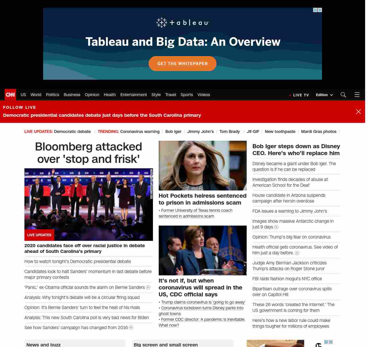 || screaming-banner-text banner-text-size–char-29″ data-analytics=”_list-hierarchical-xs_article_”> Democrats enter debate stage ||” , title: “CNN – Breaking News, Latest News and Videos” , siblings: {“articleList”:[{“uri”:”/politics/live-news/2020-democratic-debate-south-carolina/index.html”,”headline”:”u003cstrong>Warren says ‘progressives have one shot’ as she contrasts herself with the front-runner in a heated South Carolina debate u003c/strong>”,”thumbnail”:”//cdn.cnn.com/cnnnext/dam/assets/200225195641-01-cbs-news-debate-0225-empty-stage-small-11.jpg”,”duration”:””,”description”:””,”layout”:””