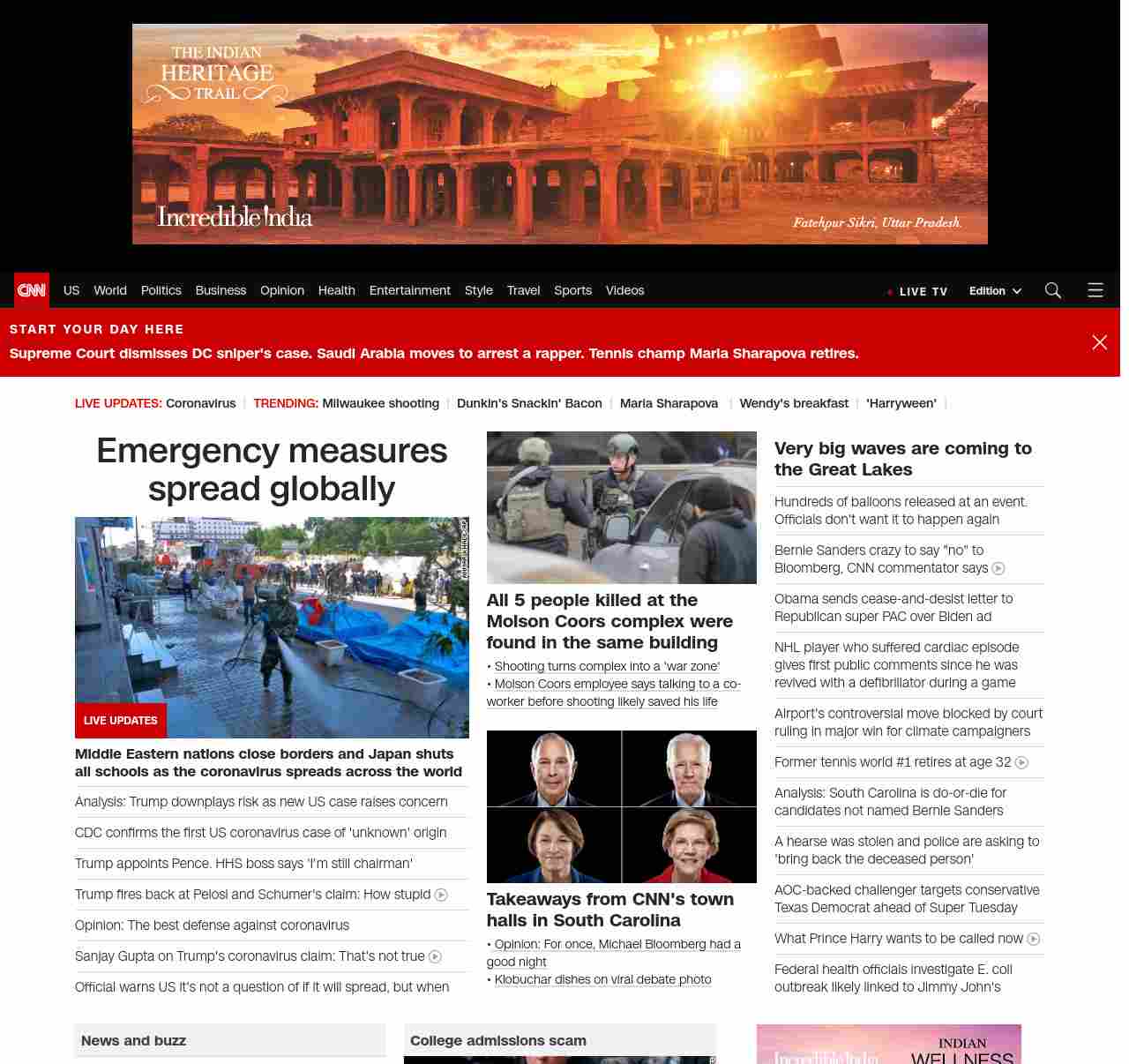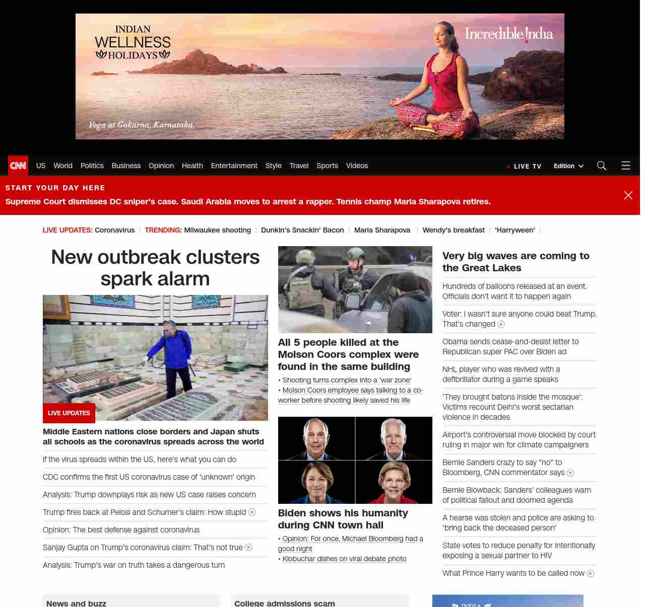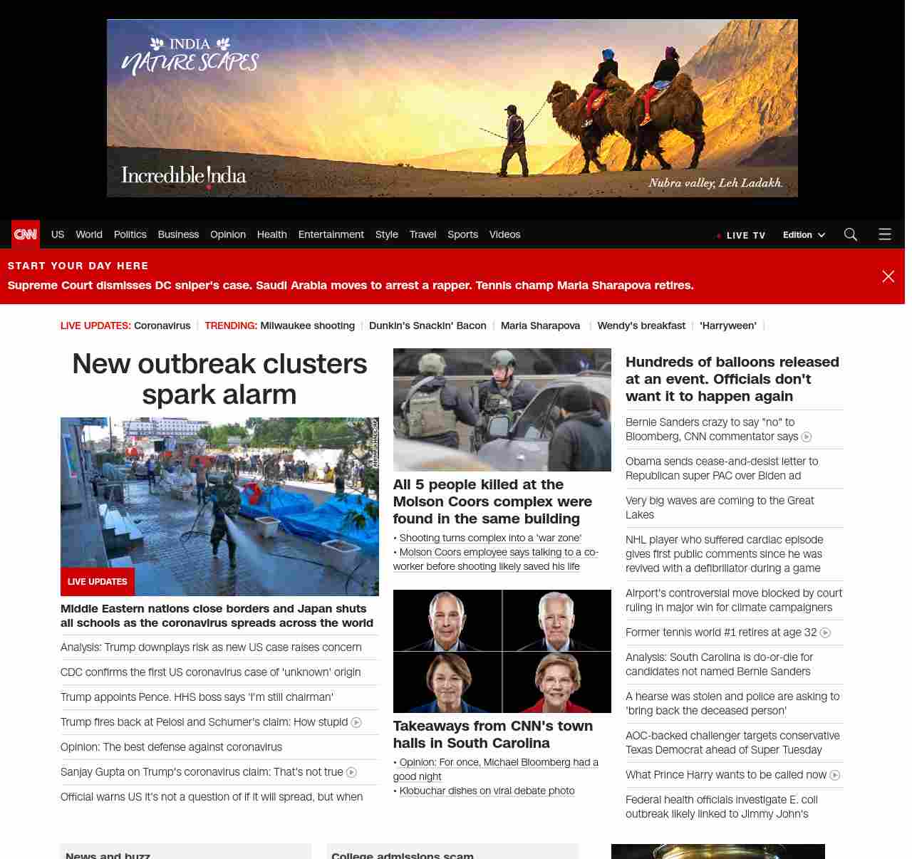 || screaming-banner-text banner-text-size–char-35″ data-analytics=”_list-hierarchical-xs_article_”> New outbreak clusters spark alarm ||” , title: “CNN – Breaking News, Latest News and Videos” , siblings: {“articleList”:[{“uri”:”/asia/live-news/coronavirus-outbreak-02-27-20-intl-hnk/index.html”,”headline”:”u003cstrong>Middle Eastern nations close borders and Japan shuts all schools as the coronavirus spreads across the worldu003c/strong>”,”thumbnail”:”//cdn.cnn.com/cnnnext/dam/assets/200227020518-05-coronavirus-0226-iraq-small-11.jpg”,”duration”:””,”description”:””,”layout”:””
