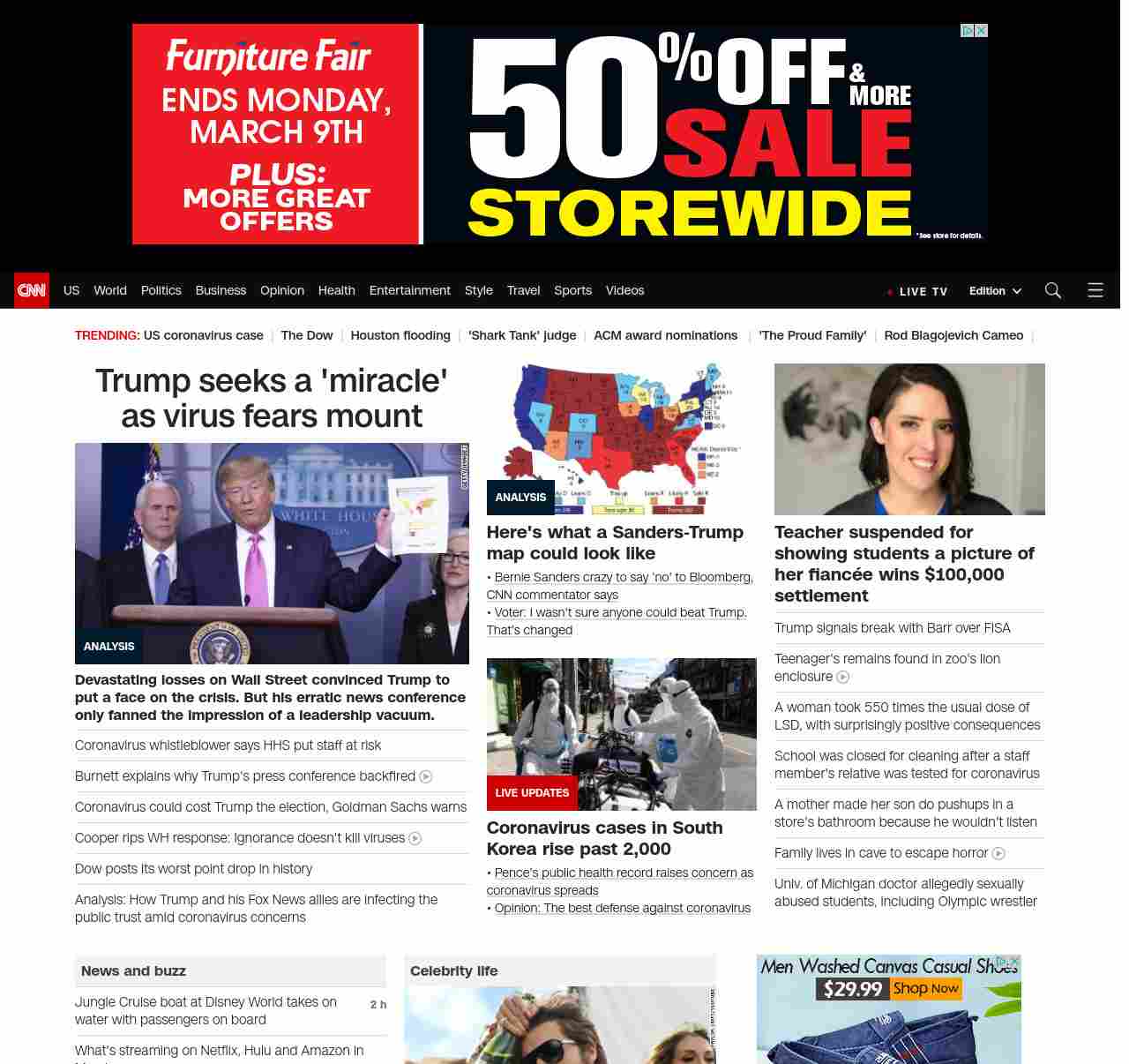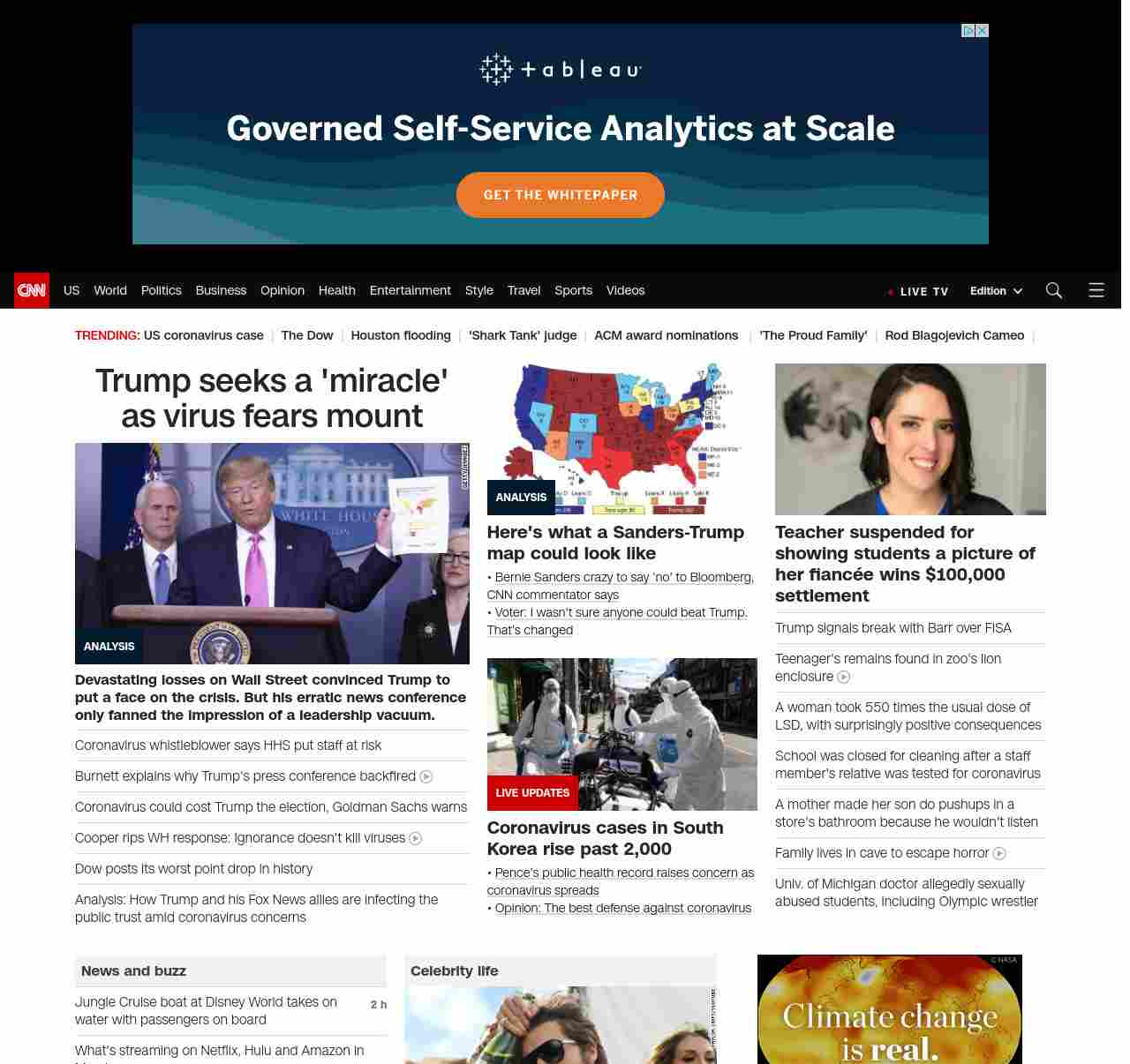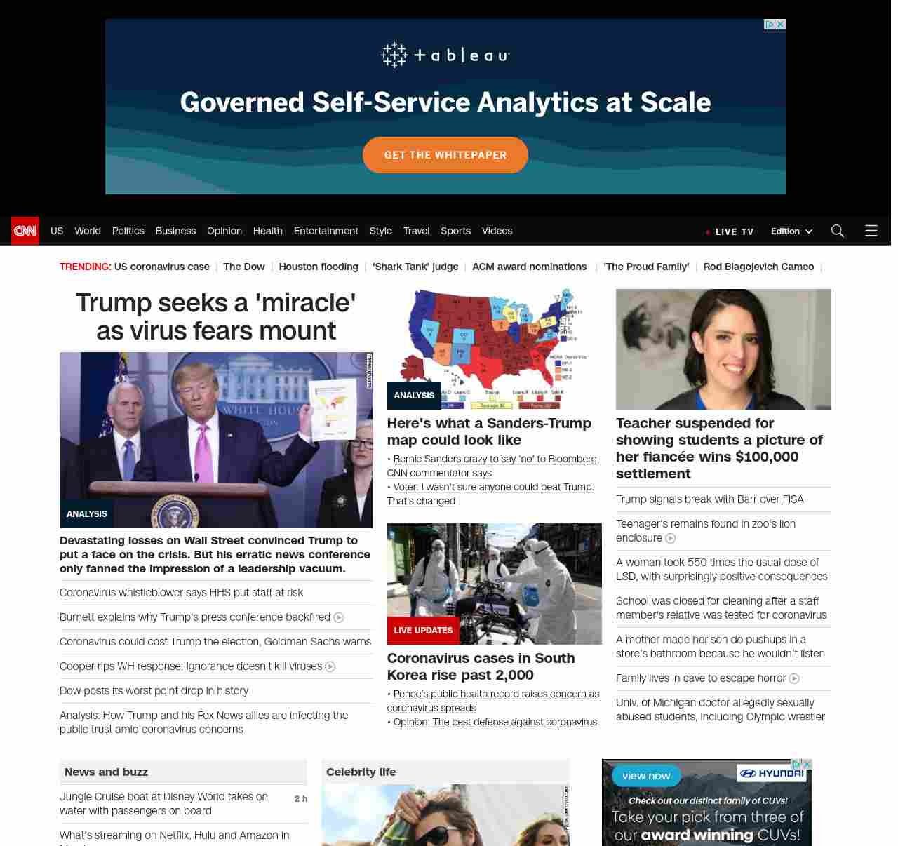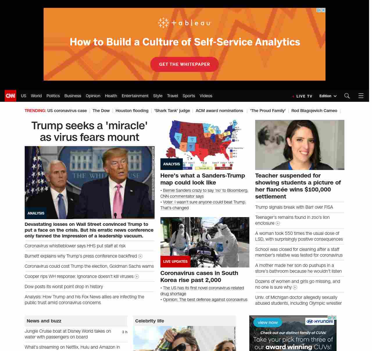 || screaming-banner-text banner-text-size–char-47″ data-analytics=”_list-hierarchical-xs_article_”> Trump seeks a ‘miracle’ as virus fears mount ||” , title: “CNN – Breaking News, Latest News and Videos” , siblings: {“articleList”:[{“uri”:”/2020/02/28/politics/donald-trump-coronavirus-miracle-stock-markets/index.html”,”headline”:”u003cstrong>Devastating losses on Wall Street convinced Trump to put a face on the crisis. But his erratic news conference only fanned the impression of a leadership vacuum.u003c/strong>”,”thumbnail”:”//cdn.cnn.com/cnnnext/dam/assets/200226190946-02-trump-coronavirus-presser-0226-small-11.jpg”,”duration”:””,”description”:”u003ca href=”https://www.cnn.com/election/2020/candidate/trump” target=”_blank”>President Donald Trumpu003c/a> is hoping for a “miracle” that u003ca href=”https://www.cnn.com/2020/02/27/politics/trump-coronavirus-disappear/index.html” target=”_blank”>will make the coronavirus disappear u003c/a>but u003ca href=”https://www.cnn.com/2020/02/27/investing/dow-stock-market-selloff/index.html” target=”_blank”>tanking stock marketsu003c/a> and signs u003ca href=”https://www.cnn.com/2020/02/27/health/coronavirus-community-spread-us-response-explainer/index.html” target=”_blank”>the disease is stalking Americau003c/a> are delivering their verdict on his scattershot management of the crisis.”,”layout”:””
