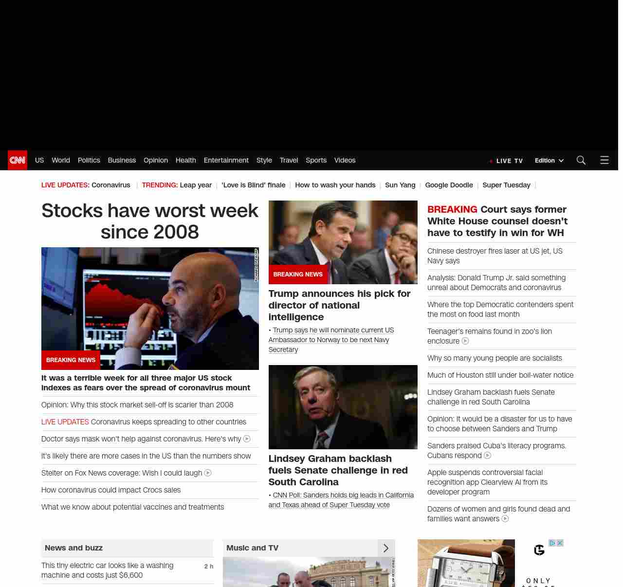 CNN3: “:”u003cstrong>It was a terrible week for all three major US stock indexes as fears over the spread of coronavirus mountu003c/strong>”, “BANNER=|pagerendered| ((lubuntu at wor3))