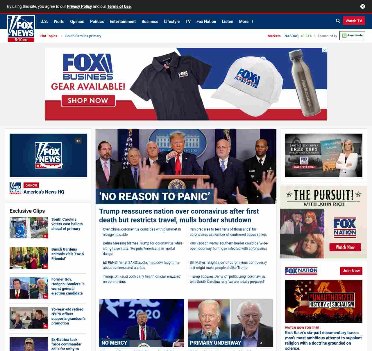 FN: [[‘NO REASON TO PANIC’]] Trump reassures nation over coronavirus after first death but restricts travel, mulls border shutdown ((lubuntu at wor3))