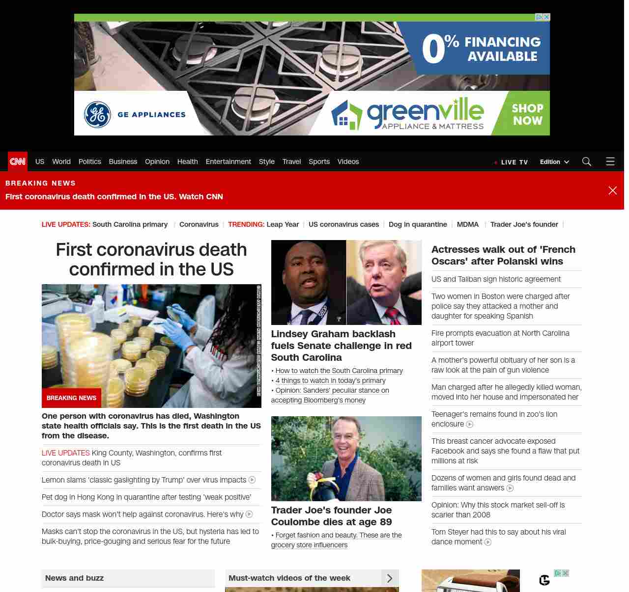 CNN1: FOXVCNN=|First coronavirus death confirmed in the US| ((lubuntu at wor3))
