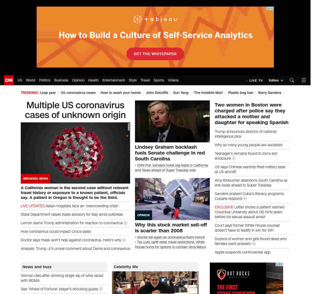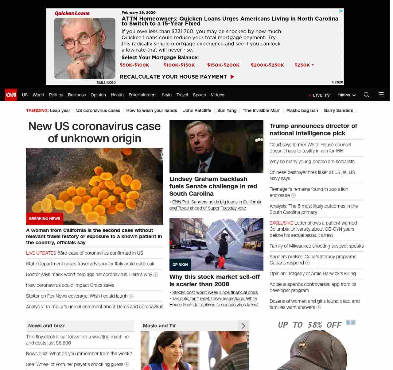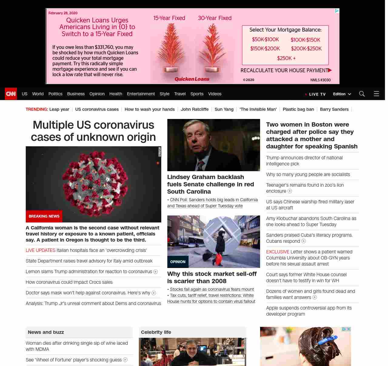 || screaming-banner-text banner-text-size–char-47″ data-analytics=”_list-hierarchical-xs_article_”> Multiple US coronavirus cases of unknown origin ||” , title: “CNN – Breaking News, Latest News and Videos” , siblings: {“articleList”:[{“uri”:”/2020/02/28/health/coronavirus-us-updates-california-patient/index.html”,”headline”:”u003cstrong>A woman from California is the second case without relevant travel history or exposure to a known patient in the country, officials sayu003c/strong>”,”thumbnail”:”//cdn.cnn.com/cnnnext/dam/assets/200213175739-03-coronavirus-0213-small-11.jpg”,”duration”:””,”description”:”An older adult woman from California might be the second case of community transmission of the u003ca href=”https://www.cnn.com/asia/live-news/coronavirus-outbreak-02-28-20-intl-hnk/index.html” target=”_blank”>novel coronavirusu003c/a>, health officials in Santa Clara County said Friday.”,”layout”:””