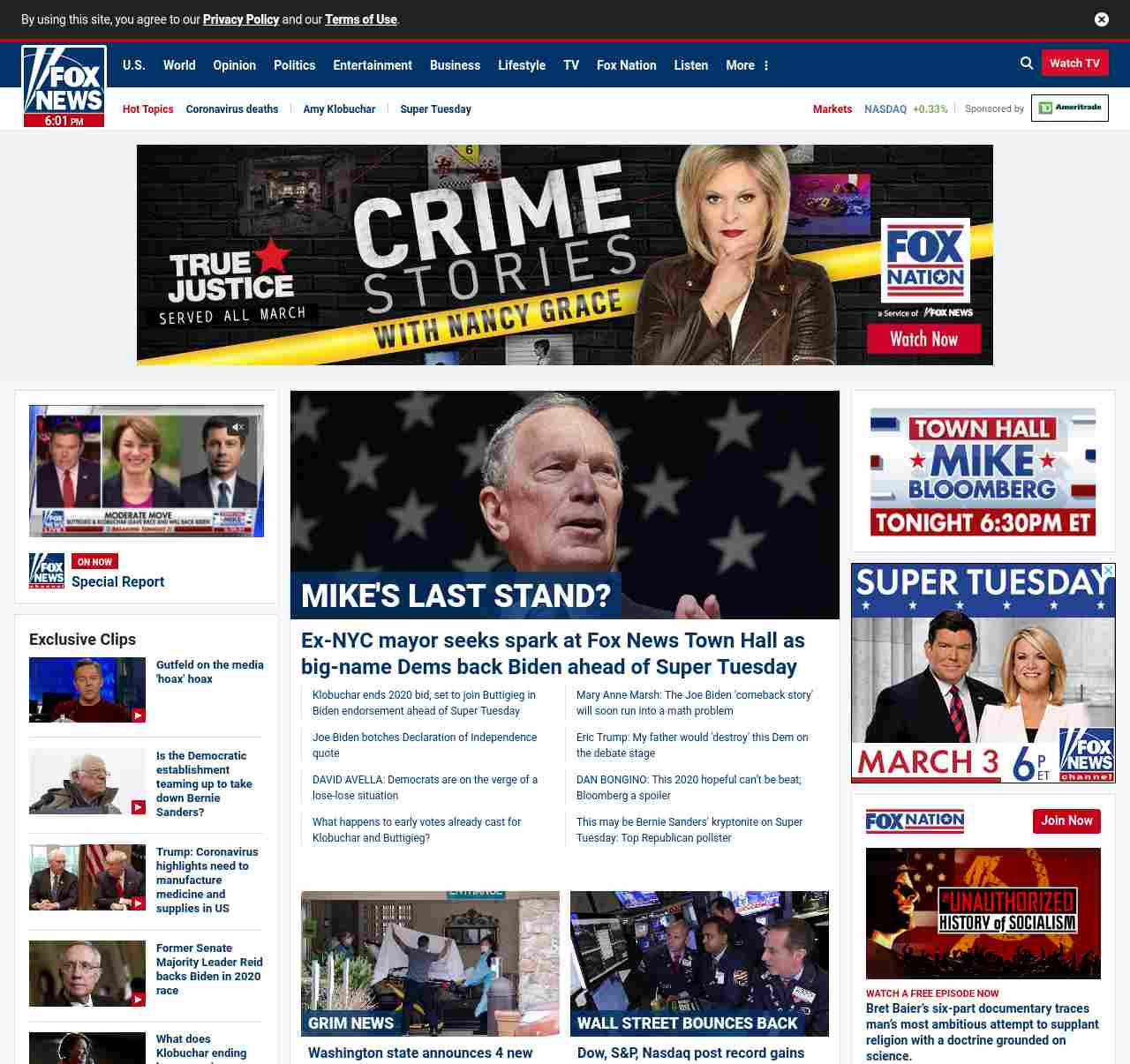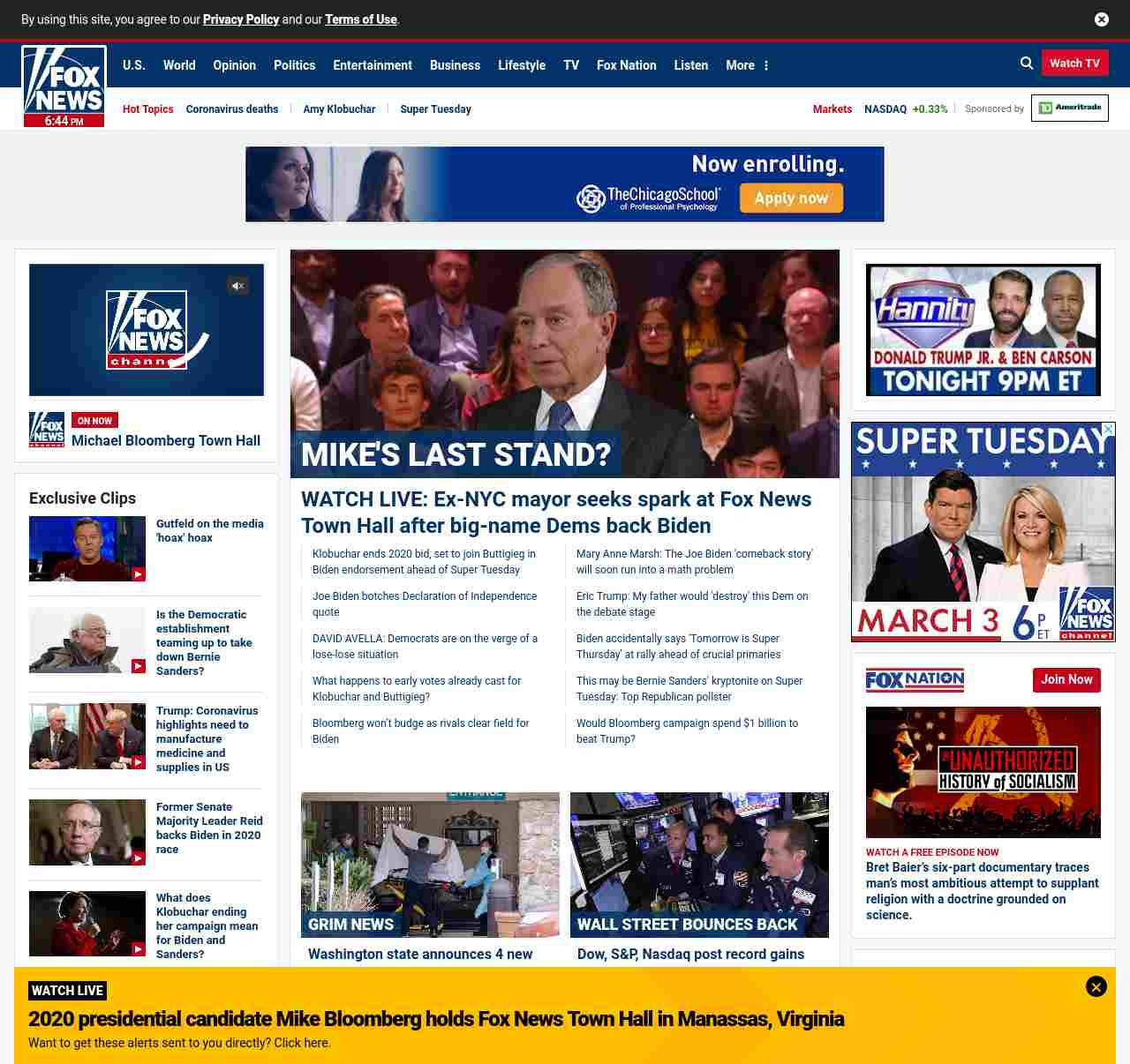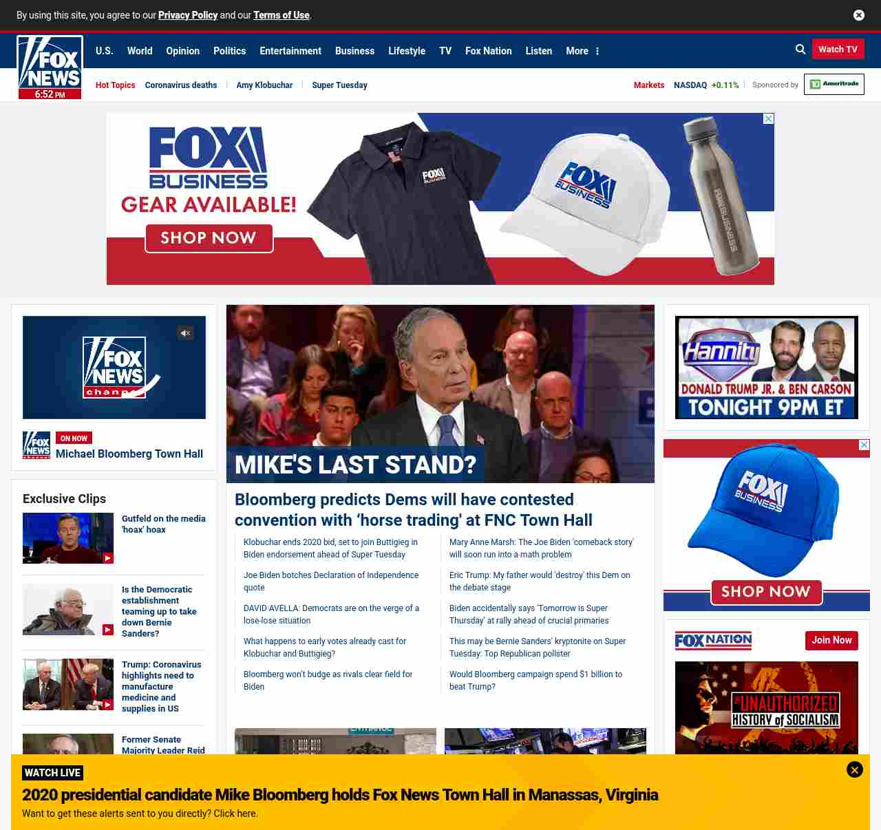 FN: [[MIKE' S LAST STAND?]] Ex-NYC mayor seeks spark at Fox News Town Hall as big-name Dems back Biden ahead of Super Tuesday ((lubuntu at wor3))