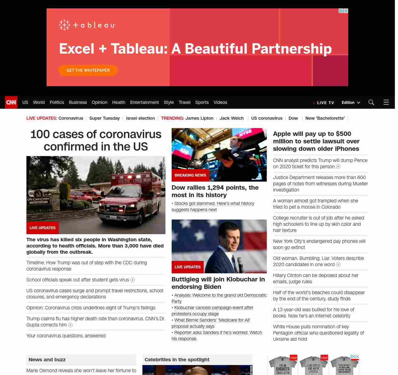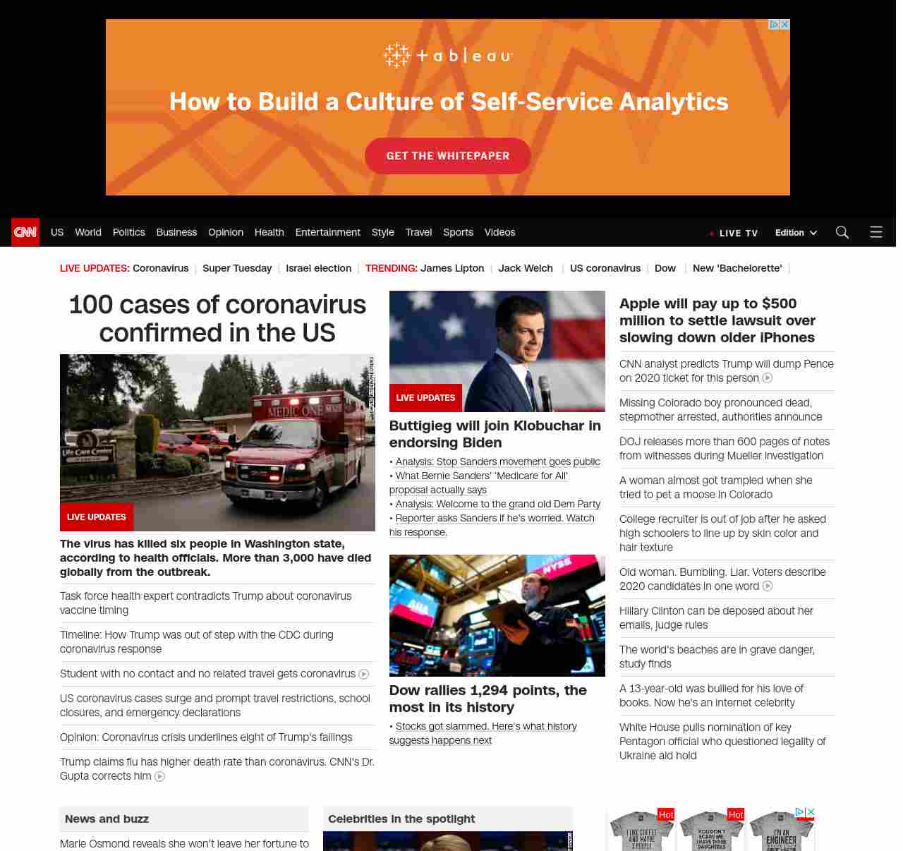 || screaming-banner-text banner-text-size–char-47″ data-analytics=”_list-hierarchical-xs_hyperlink_”> 100 cases of coronavirus confirmed in the US ||” , title: “CNN – Breaking News, Latest News and Videos” , siblings: {“articleList”:[{“uri”:”/2020/03/02/politics/donald-trump-coronavirus-vaccine-push-back/index.html”,”headline”:”Task force health expert contradicts Trump about coronavirus vaccine timing”,”thumbnail”:”//cdn.cnn.com/cnnnext/dam/assets/200302163544-01-trump-coronavirus-0302-small-11.jpg”,”duration”:””,”description”:”u003ca href=”https://www.cnn.com/election/2020/candidate/trump” target=”_blank”>President Donald Trumpu003c/a> was contradicted by a health expert on his u003ca href=”http://www.cnn.com/2020/03/02/health/us-coronavirus-cases-monday/index.html” target=”_blank”>coronavirus task forceu003c/a> over the u003ca href=”http://www.cnn.com/2020/03/02/politics/us-coronavirus-politics-donald-trump-joe-biden-washington/index.html” target=”_blank”>timing for a potential vaccineu003c/a> during a briefing Monday.”,”layout”:””