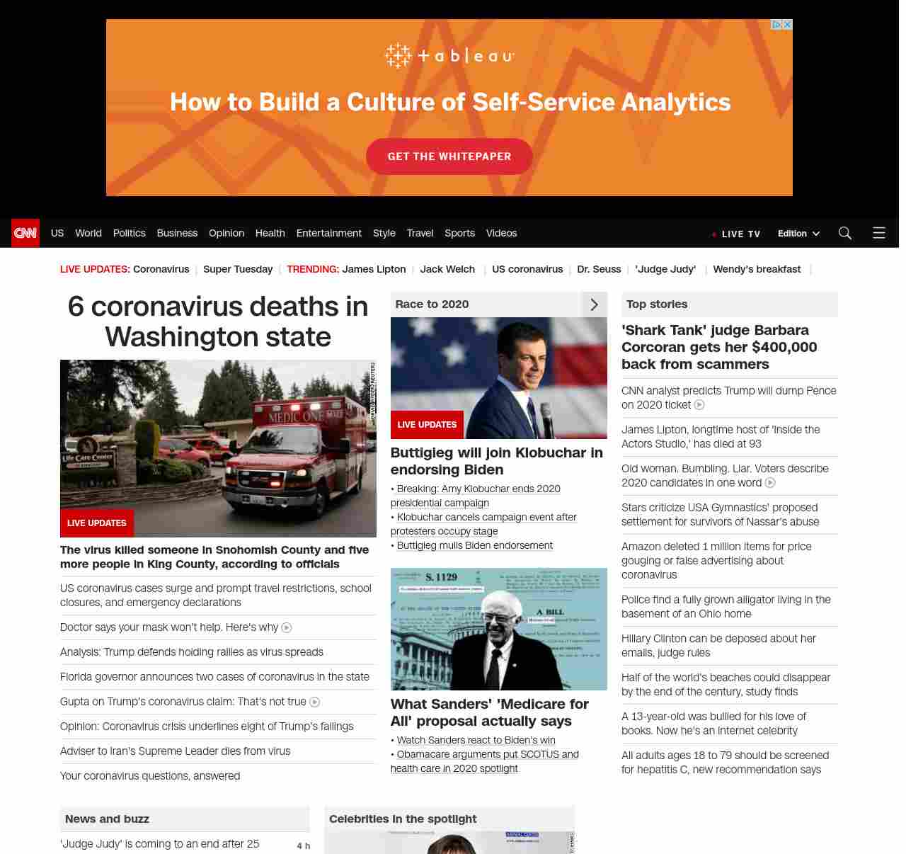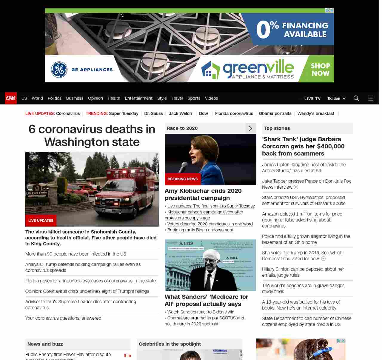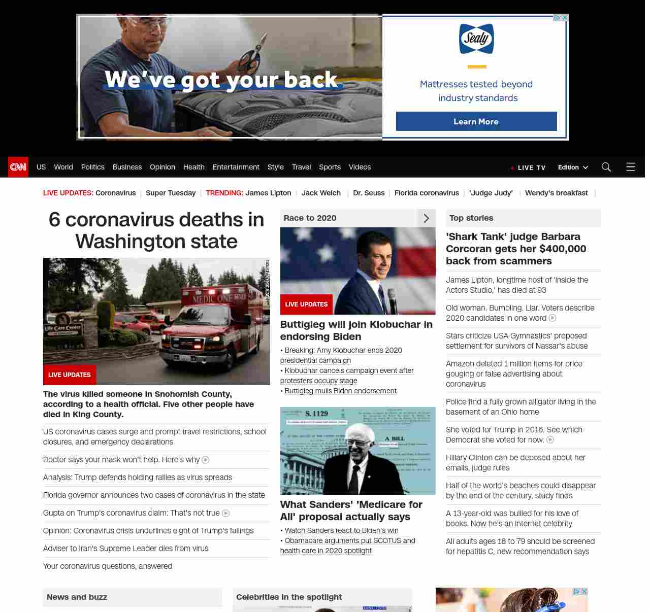 || screaming-banner-text banner-text-size–char-41″ data-analytics=”_list-hierarchical-xs_hyperlink_”> 6 coronavirus deaths in Washington state ||” , title: “CNN – Breaking News, Latest News and Videos” , siblings: {“articleList”:[{“uri”:”/2020/03/02/health/us-coronavirus-cases-monday/index.html”,”headline”:”US coronavirus cases surge and prompt travel restrictions, school closures, and emergency declarations”,”thumbnail”:”//cdn.cnn.com/cnnnext/dam/assets/200301171519-01-coronavirus-washington-state-0229-small-11.jpg”,”duration”:””,”description”:”u003cstrong>[Breaking news update at 2:42 p.m. ET]u003c/strong>”,”layout”:””