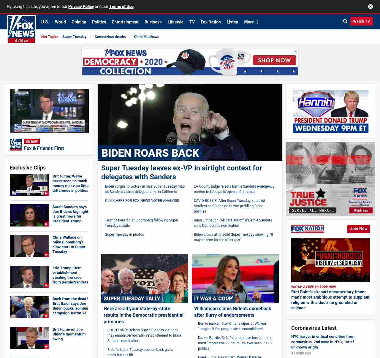 FN: [[BIDEN ROARS BACK]] Super Tuesday leaves ex-VP in airtight contest for delegates with Sanders ((lubuntu at wor3))