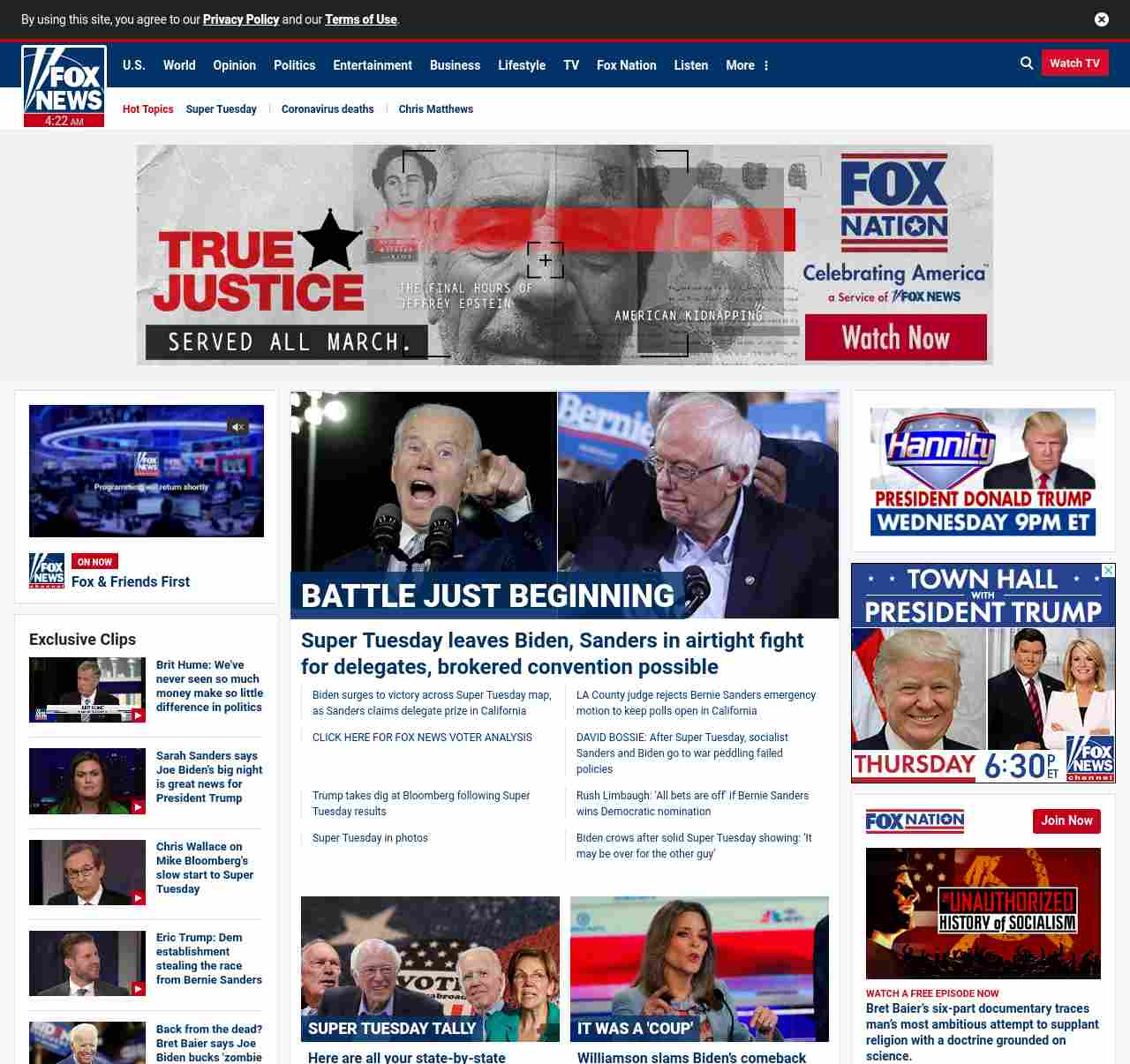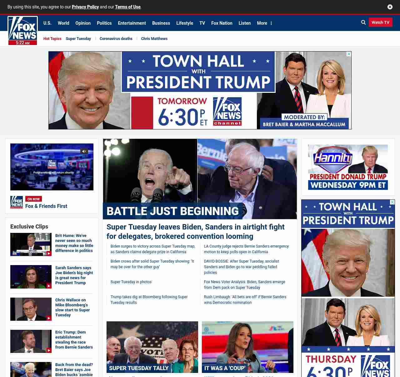 FN: [[BATTLE JUST BEGINNING]] Super Tuesday leaves Biden, Sanders in airtight fight for delegates, brokered convention looming ((lubuntu at wor3))