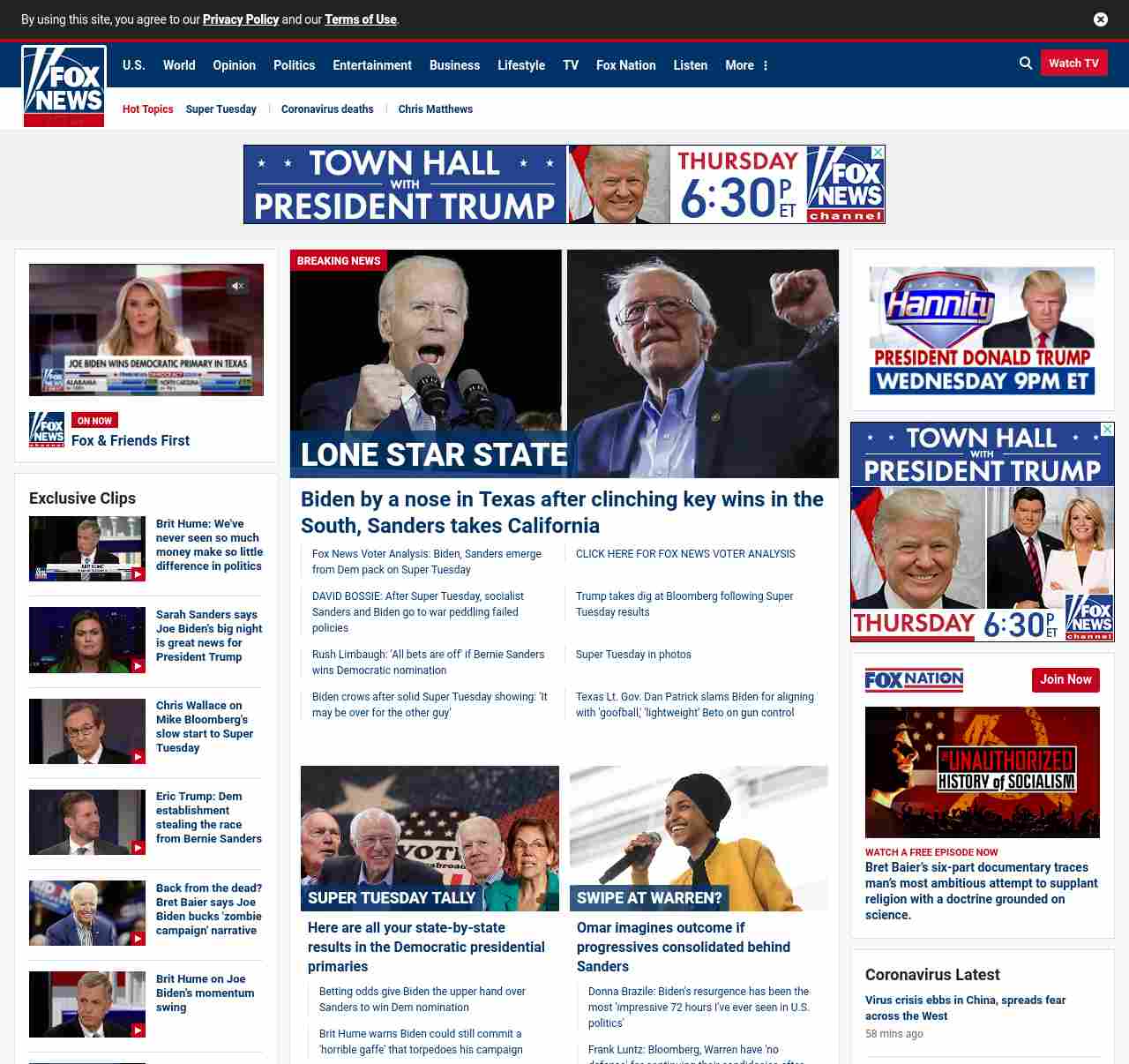 FN: [[LONE STAR STATE]] Biden by a nose in Texas after clinching key wins in the South, Sanders takes California ((lubuntu at wor3))