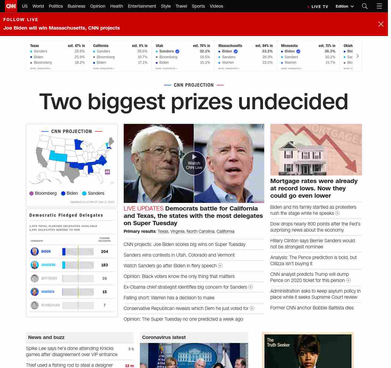 || banner-text–natural”> Two biggest prizes undecided ||” , title: “CNN – Breaking News, Latest News and Videos” , siblings: {“articleList”:[{“uri”:”/politics/live-news/super-tuesday-results-2020/index.html”,”headline”:”u003cstrong>Biden wins 8 states and Sanders takes three. A massive number of delegates in California and Texas are up for grabs.u003c/strong>”,”thumbnail”:”//cdn.cnn.com/cnnnext/dam/assets/200303233206-08-biden-sadners-split-small-11.jpg”,”duration”:””,”description”:”u003cstrong>Primary resultsu003c/strong>: u003ca href=”http://www.cnn.com/2020/03/03/politics/texas-primary-results-live/index.html” target=”_blank”>Texasu003c/a>, u003ca href=”http://www.cnn.com/2020/03/03/politics/virginia-primary-results-live/index.html” target=”_blank”>Virginiau003c/a>, u003ca href=”https://www.cnn.com/2020/03/03/politics/north-carolina-primary-results-live/index.html” target=”_blank”>North Carolinau003c/a>, u003ca href=”http://www.cnn.com/2020/03/03/politics/california-primary-results-live/index.html” target=”_blank”>Californiau003c/a>”,”layout”:””