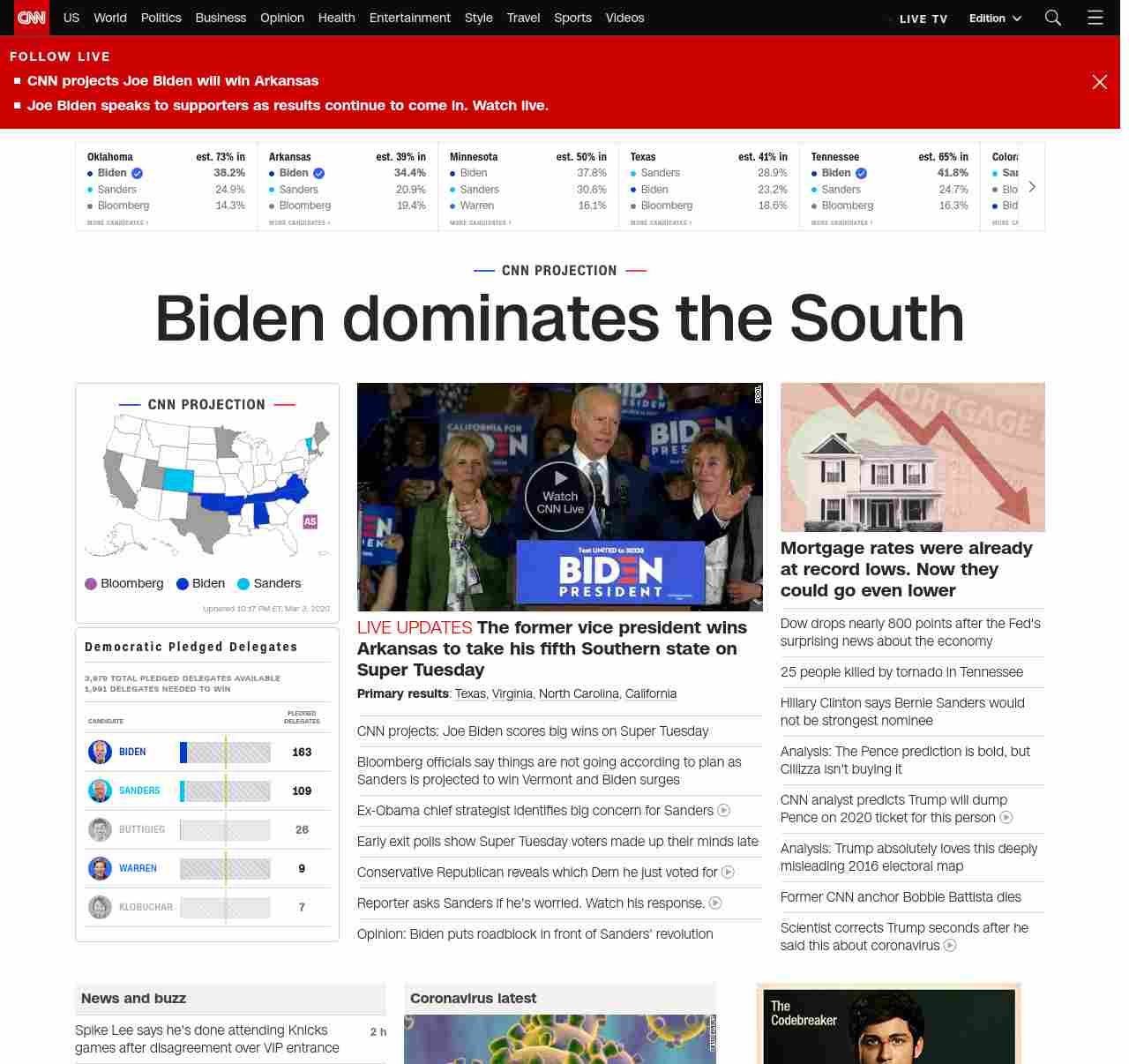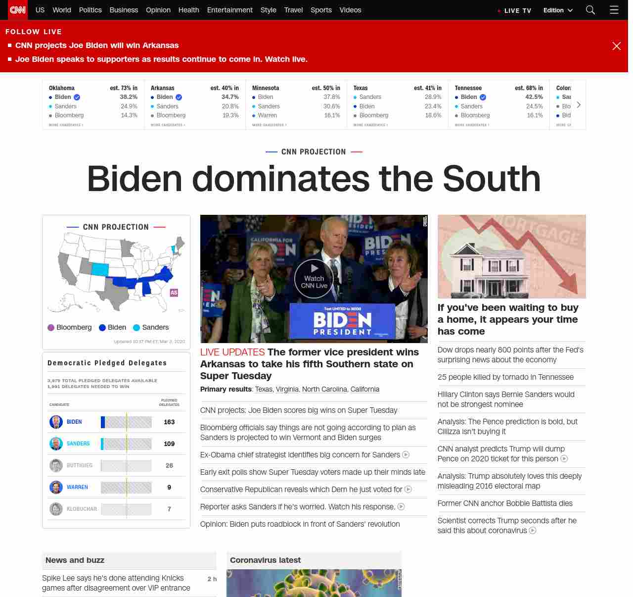 || banner-text–natural”> Biden dominates the South ||” , title: “CNN – Breaking News, Latest News and Videos” , siblings: {“articleList”:[{“uri”:”/politics/live-news/super-tuesday-results-2020/index.html”,”headline”:”u003cstrong>The former vice president wins Arkansas to take his fifth Southern state on Super Tuesdayu003c/strong>”,”thumbnail”:”//cdn.cnn.com/cnnnext/dam/assets/200303222421-02-biden-super-tuesday-0303-small-11.jpg”,”duration”:””,”description”:”u003cstrong>Primary resultsu003c/strong>: u003ca href=”http://www.cnn.com/2020/03/03/politics/texas-primary-results-live/index.html” target=”_blank”>Texasu003c/a>, u003ca href=”http://www.cnn.com/2020/03/03/politics/virginia-primary-results-live/index.html” target=”_blank”>Virginiau003c/a>, u003ca href=”https://www.cnn.com/2020/03/03/politics/north-carolina-primary-results-live/index.html” target=”_blank”>North Carolinau003c/a>, u003ca href=”http://www.cnn.com/2020/03/03/politics/california-primary-results-live/index.html” target=”_blank”>Californiau003c/a>”,”layout”:””