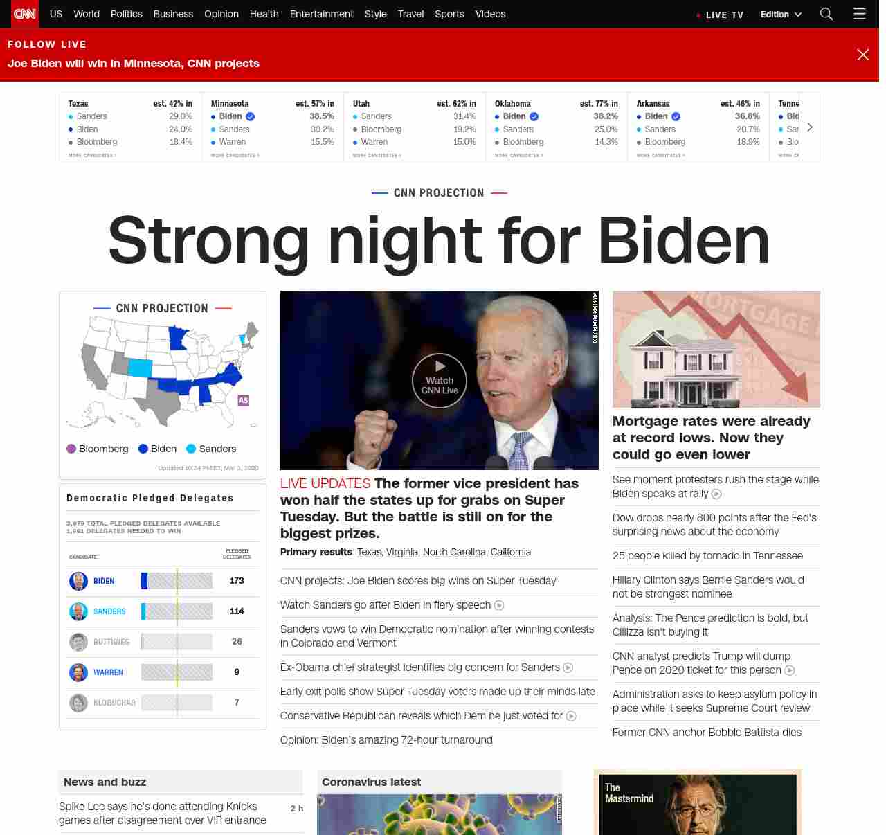 || banner-text–maximized banner-text-size–char-23″> Strong night for Biden ||” , title: “CNN – Breaking News, Latest News and Videos” , siblings: {“articleList”:[{“uri”:”/politics/live-news/super-tuesday-results-2020/index.html”,”headline”:”u003cstrong>The former vice president has won half the states up for grabs on Super Tuesday. But the battle is still on for the biggest prizes.u003c/strong>”,”thumbnail”:”//cdn.cnn.com/cnnnext/dam/assets/200303224514-05-biden-super-tuesday-0303-small-11.jpg”,”duration”:””,”description”:”u003cstrong>Primary resultsu003c/strong>: u003ca href=”http://www.cnn.com/2020/03/03/politics/texas-primary-results-live/index.html” target=”_blank”>Texasu003c/a>, u003ca href=”http://www.cnn.com/2020/03/03/politics/virginia-primary-results-live/index.html” target=”_blank”>Virginiau003c/a>, u003ca href=”https://www.cnn.com/2020/03/03/politics/north-carolina-primary-results-live/index.html” target=”_blank”>North Carolinau003c/a>, u003ca href=”http://www.cnn.com/2020/03/03/politics/california-primary-results-live/index.html” target=”_blank”>Californiau003c/a>”,”layout”:””