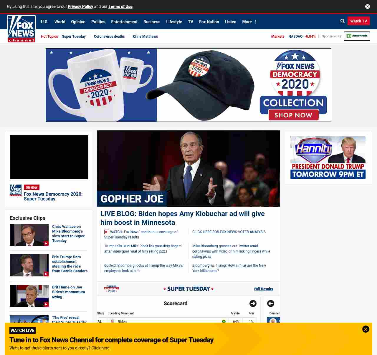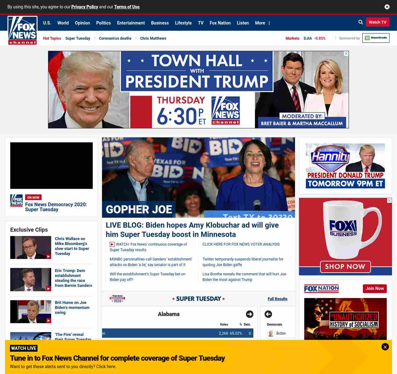 =”https://www.foxnews.com/elections/2020/primary-results/live-blog“>LIVE BLOG: Biden hopes Amy Klobuchar ad will give him Super Tuesday boost in Minnesota