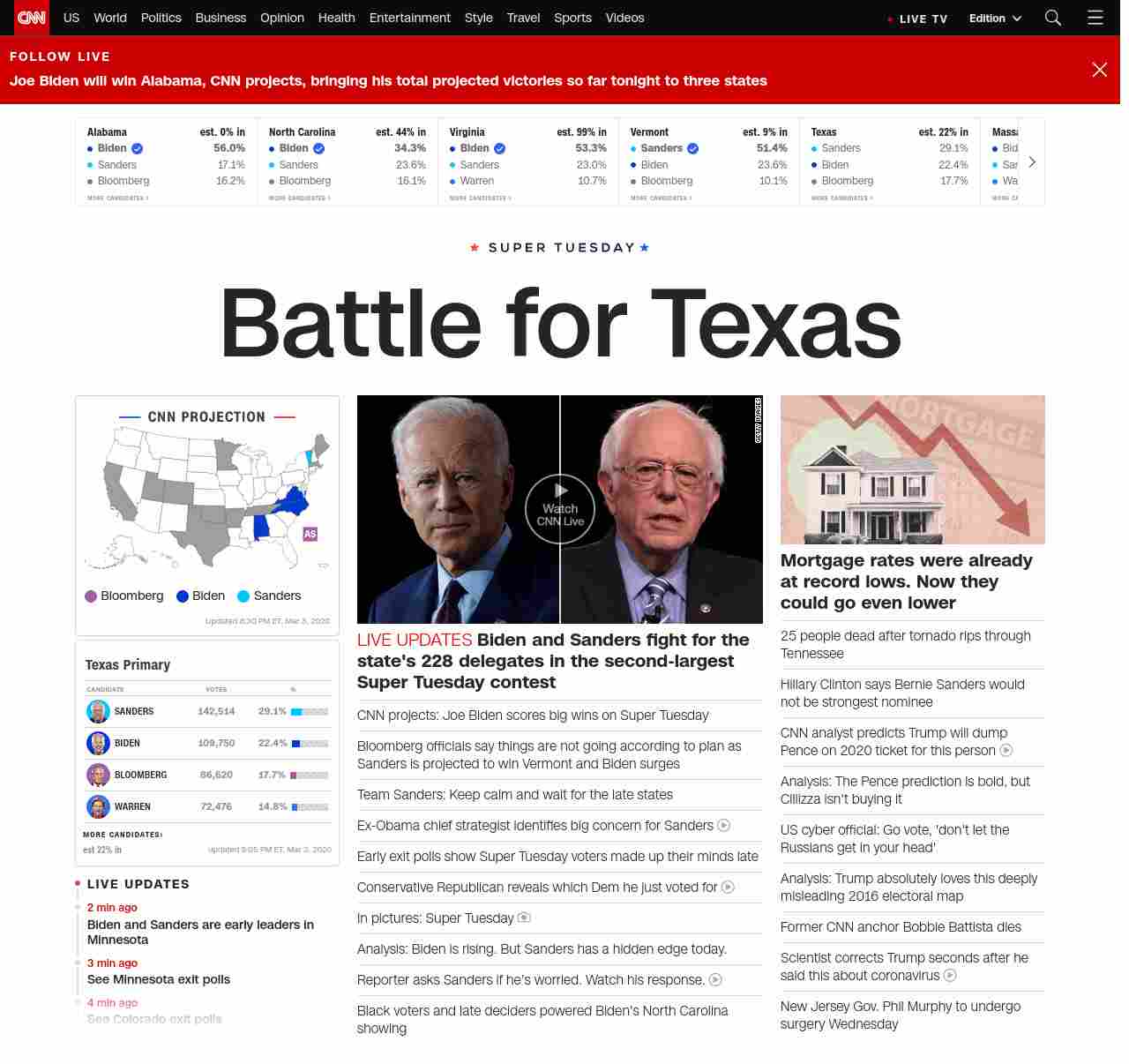 || banner-text–maximized banner-text-size–char-17″> Battle for Texas ||” , title: “CNN – Breaking News, Latest News and Videos” , siblings: {“articleList”:[{“uri”:”/politics/live-news/super-tuesday-results-2020/index.html”,”headline”:”u003cstrong>Biden and Sanders fight for the state’s 228 delegates in the second-largest Super Tuesday contestu003c/strong>”,”thumbnail”:”//cdn.cnn.com/cnnnext/dam/assets/200303181313-04-biden-sanders-split-small-11.jpg”,”duration”:””,”description”:””,”layout”:””